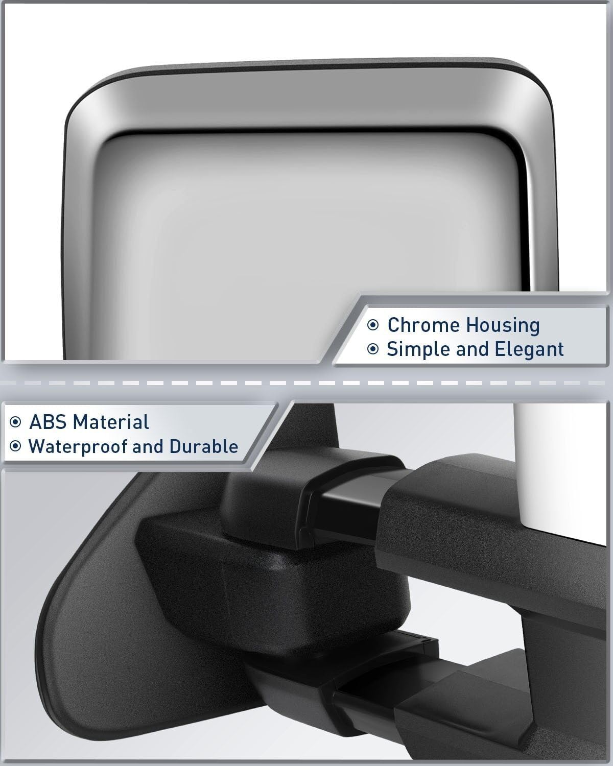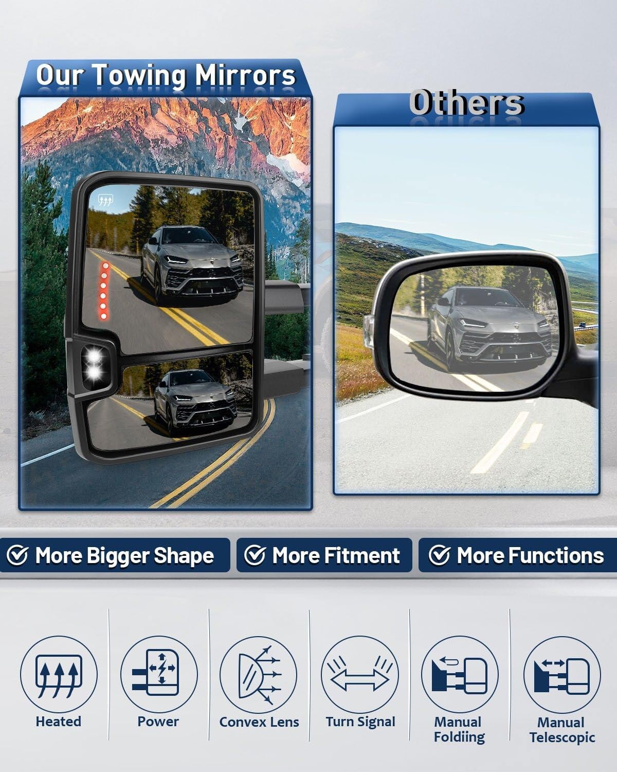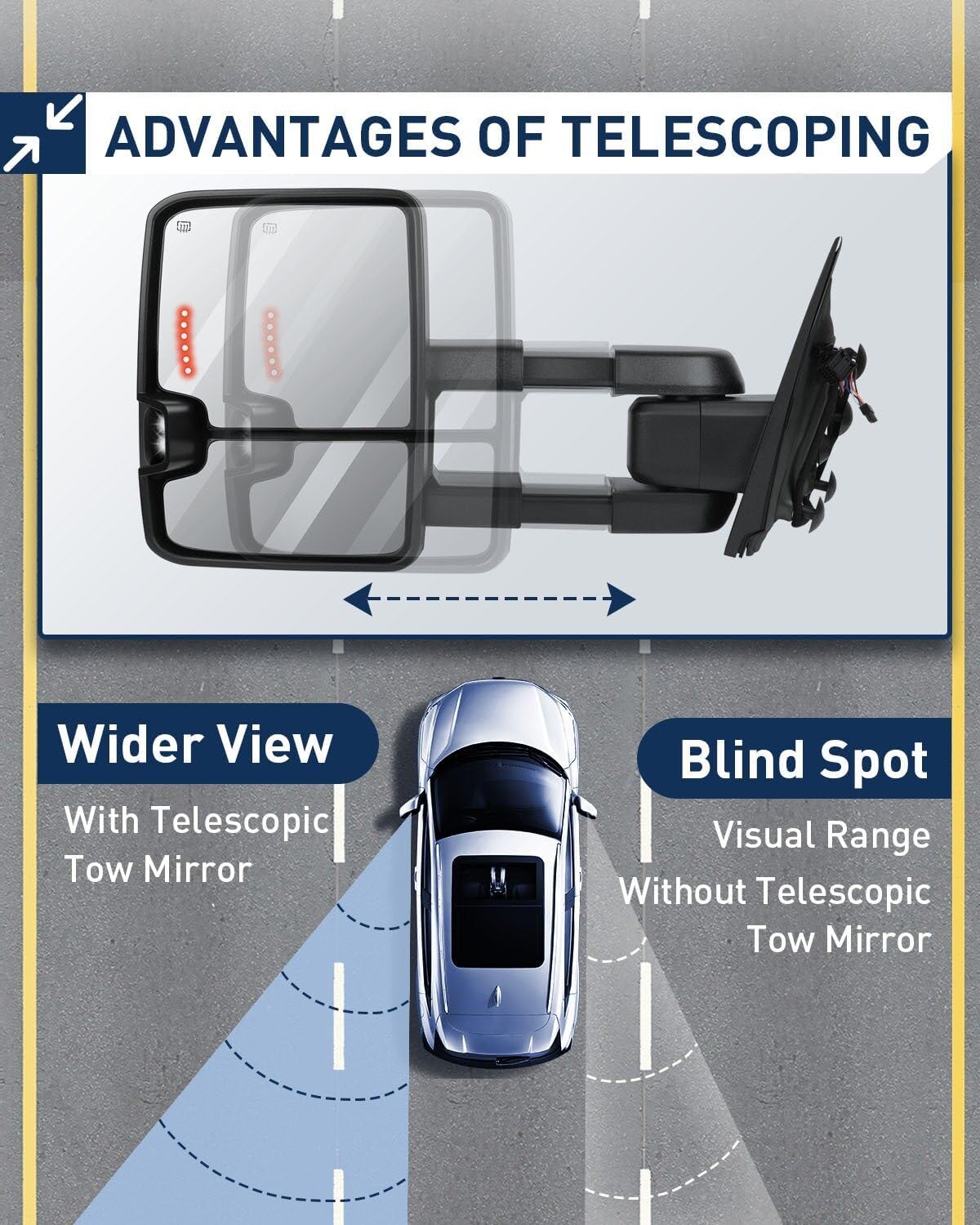 - El espejo de remolque proporciona un mejor y más amplio ángulo de visión trasera, mejora la visibilidad y reduce el punto ciego. Mejora la seguridad vial. Fácil de instalar