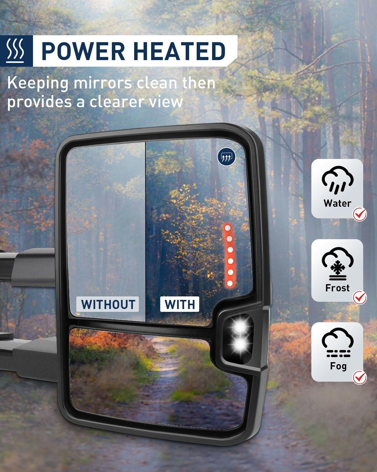- 🎄 Multifunción: carcasa negra, vidrio ajustable a la potencia, calentado (funciona con el descongelador trasero como el original), las luces direccionales funcionan dinámicamente como luces de carrera, luces de flecha LED, luces de marcha atrás y holgura, plegado manual, telescópico manual (de 18.5 a 21.6 pulgadas)