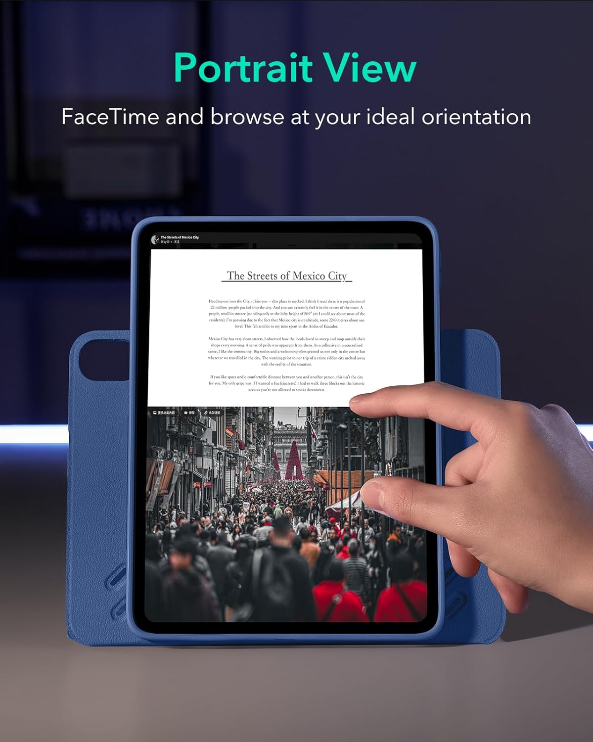 - Vista de pantalla elevada: disfruta de una vista elevada de tu iPad Air más cerca de la línea natural de tus ojos y disfruta de una posición más cómoda durante los largos períodos de uso