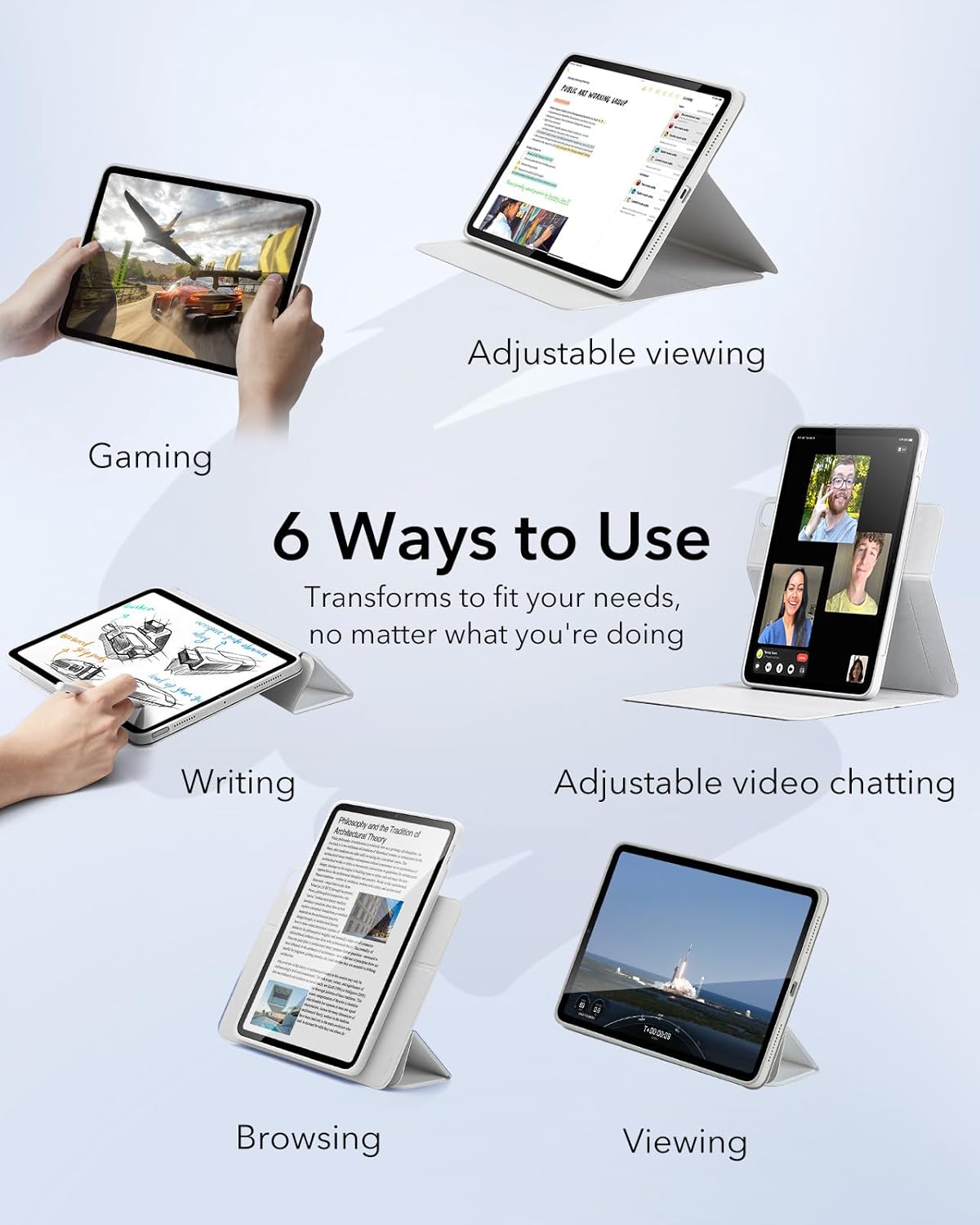 • Múltiples modos de uso: transforma tu iPad para lo que quieras hacer, con 6 modos de uso únicos que incluyen retrato y paisaje ajustables.