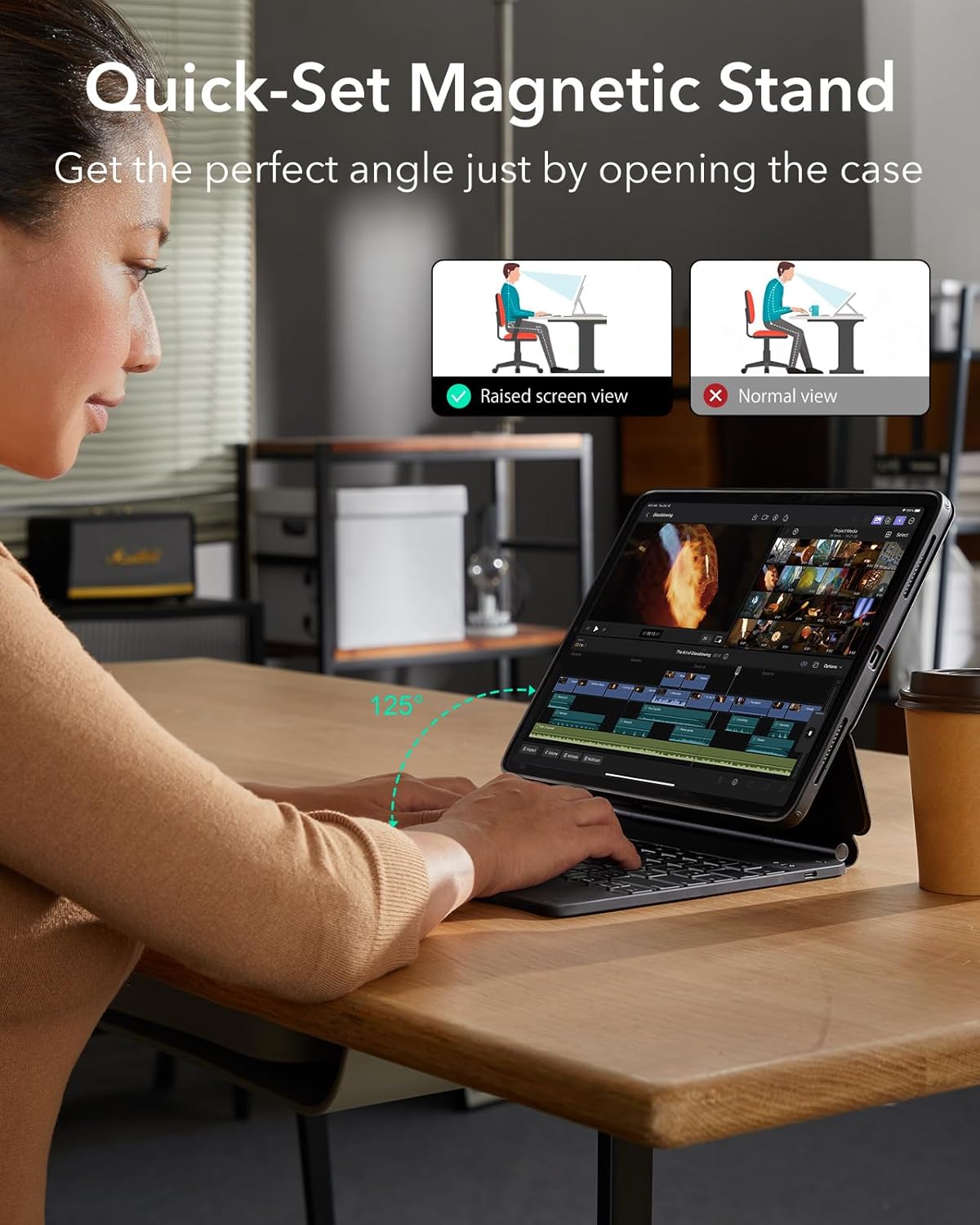 La funda ESR para iPad Pro de 13 pulgadas (M4, 2024) combina protección y funcionalidad con un teclado integrado y soporte magnético fácil de instalar. Su diseño 360° permite usar el iPad en modos retrato o elevado, adaptándose a tus necesidades. Además, el teclado es extraíble para mayor comodidad y versatilidad. Ideal para quienes buscan productividad y estilo en un solo accesorio.
