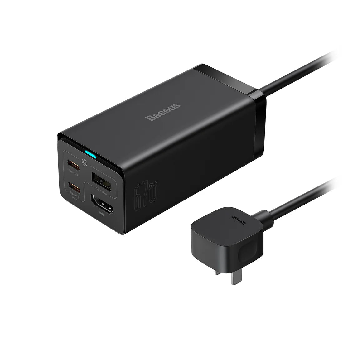- Cargador rápido de escritorio GaN5 Pro. Combina un cargador rápido GaN de 67 W y un concentrador HDMI en un solo diseño, satisfaciendo tus necesidades de carga, transmisión de pantalla y expansión de puertos a la vez. Trabajo de alta eficiencia con un solo dispositivo.