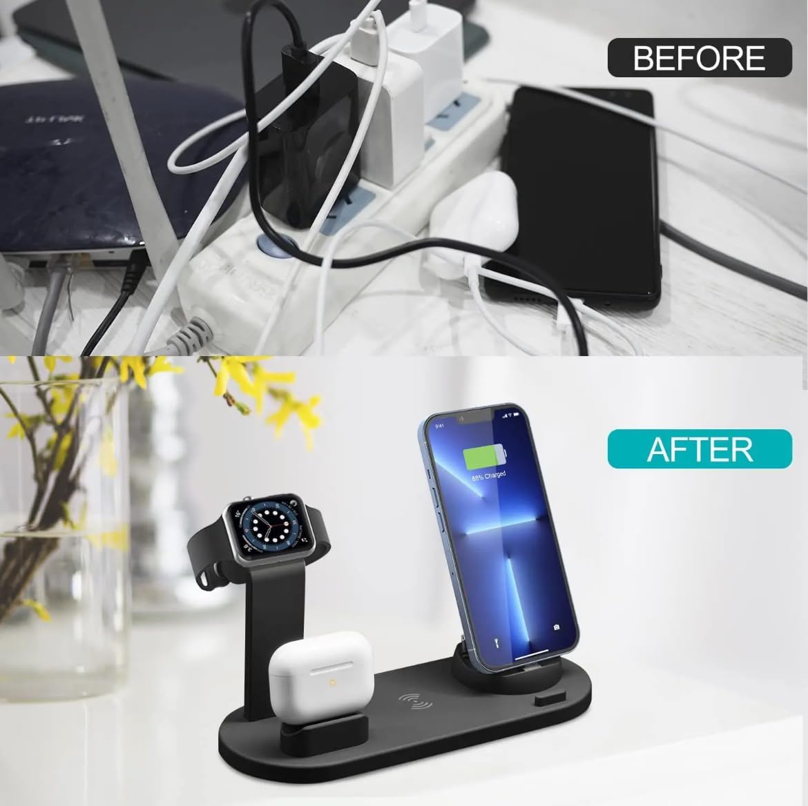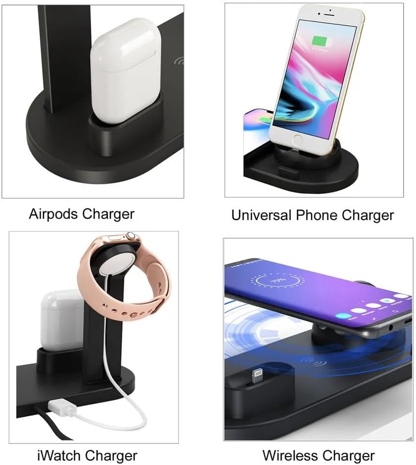 - Diseño elegante y compacto: la estación de carga del reloj de los AirPods no solo es potente, sino también elegante. Nuestra estación de carga de escritorio de diseño elegante y compacto añade un toque de modernidad a tu espacio mientras mantiene tus dispositivos organizados y listos para usar.