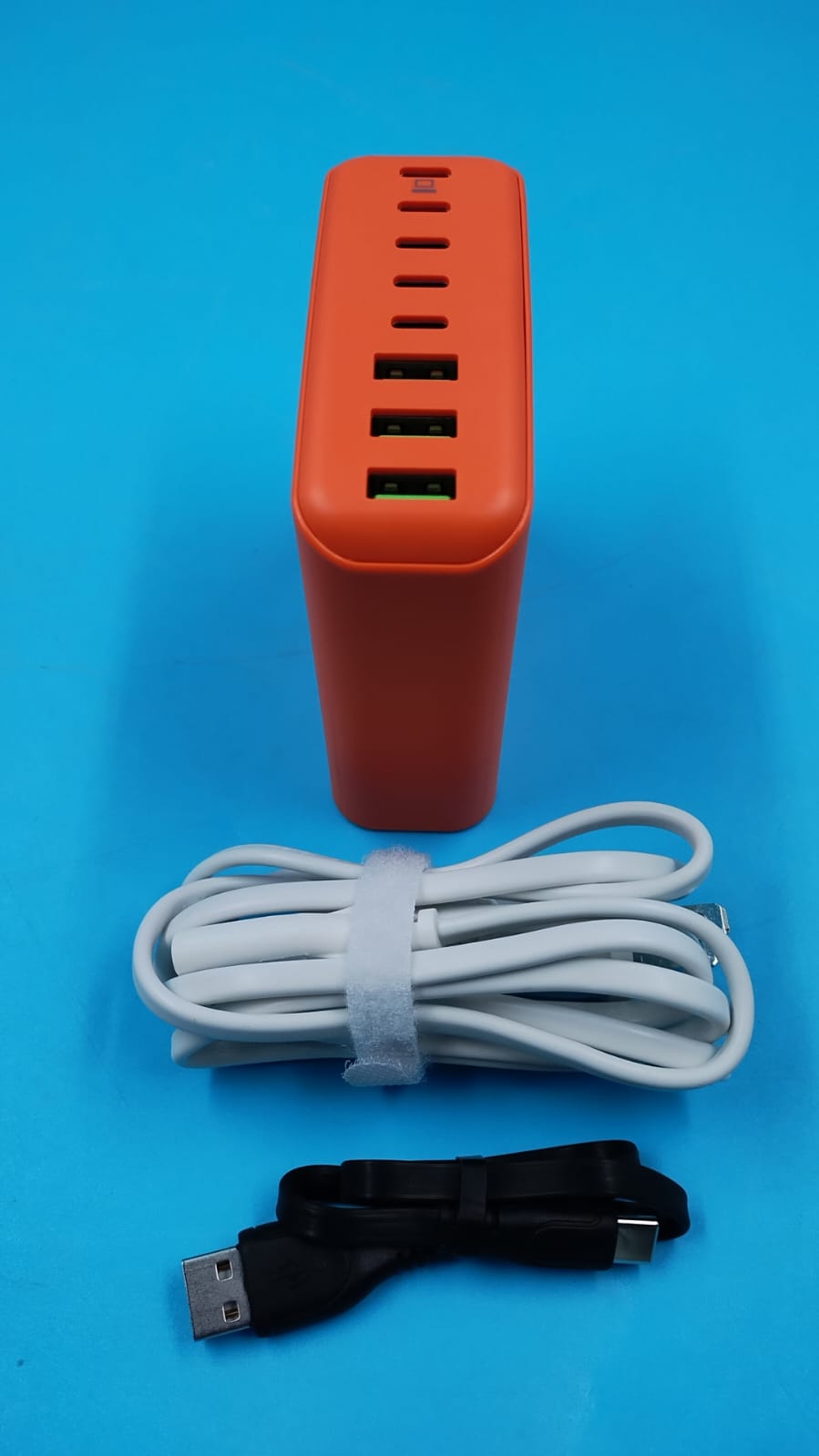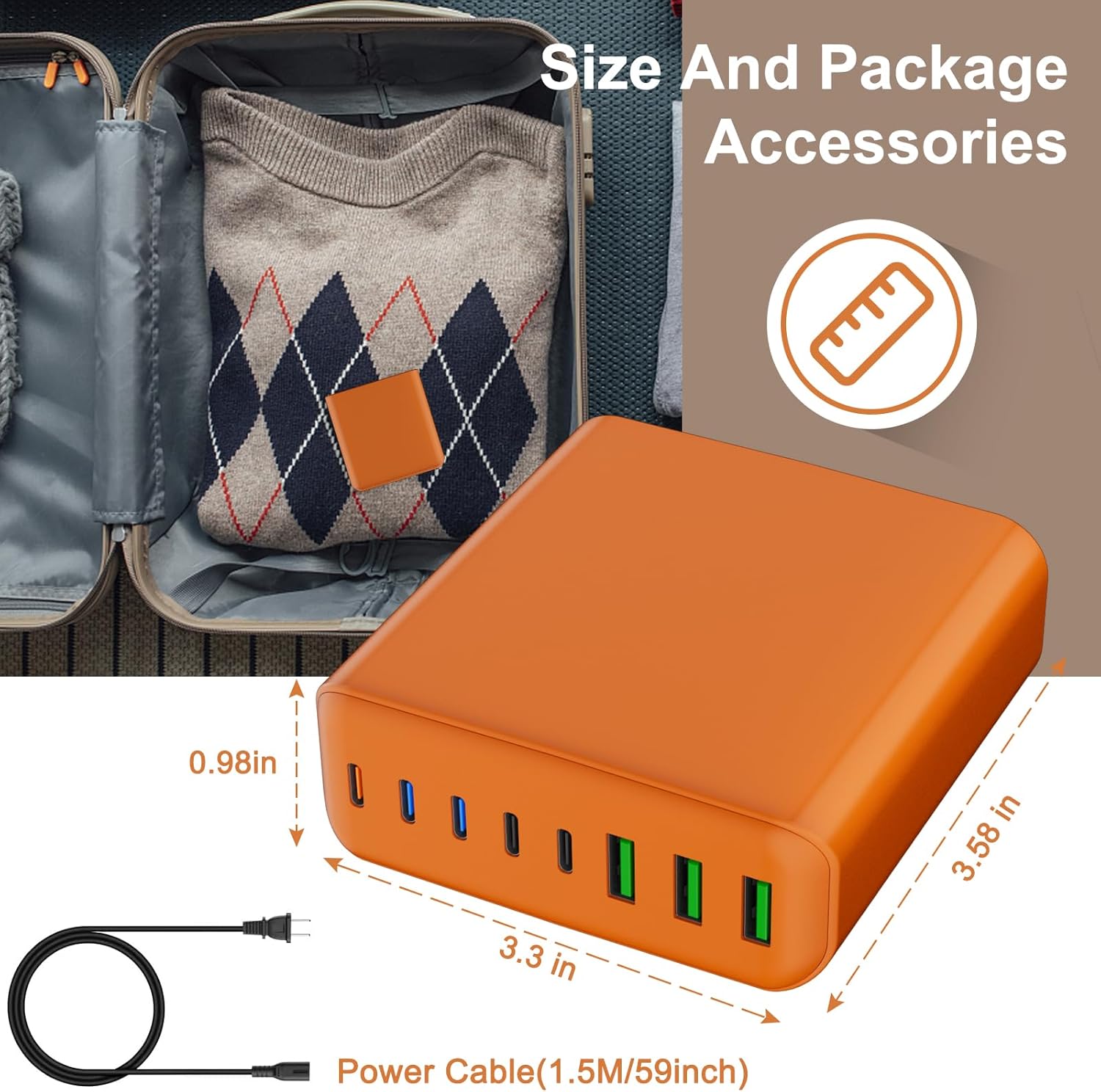 - Cargador USB C de 265 W: este cargador USB C incluye una gran cantidad de puertos de alimentación simultáneos para múltiples dispositivos. Este cargador de pared USB multipuerto comparte una salida total de hasta 265W con 5 puertos USB-C y 3 puertos USB-A. Lo que es genial es que la potencia máxima de 65 vatios le permite alimentar su computadora portátil/MacBook Series.