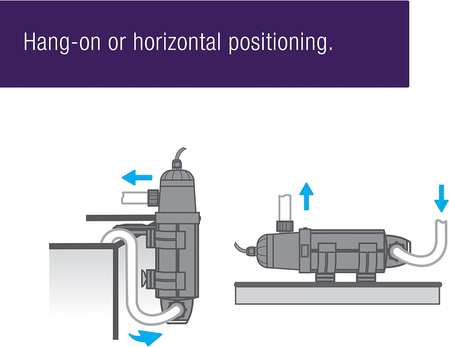 - Cuenta con un diseño único de flujo giratorio que aumenta la exposición del agua a la luz ultravioleta mejorando el tratamiento de algas y microorganismos no deseados.