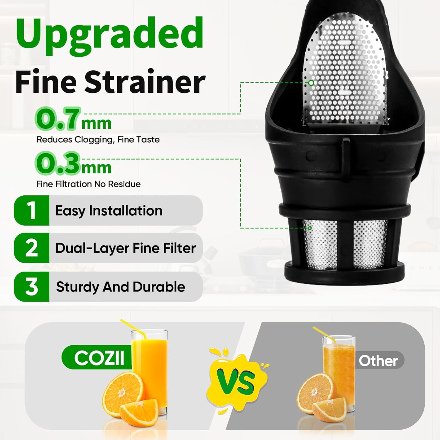 - Componentes duraderos: salud mejorada con material de alta calidad sin BPA, nuestro exprimidor de prensa en frío está diseñado para durar. Las cuchillas de corte de acero inoxidable y la carcasa de plástico reforzado están diseñadas para soportar el uso diario, asegurando una experiencia de jugo confiable y constante cada vez.