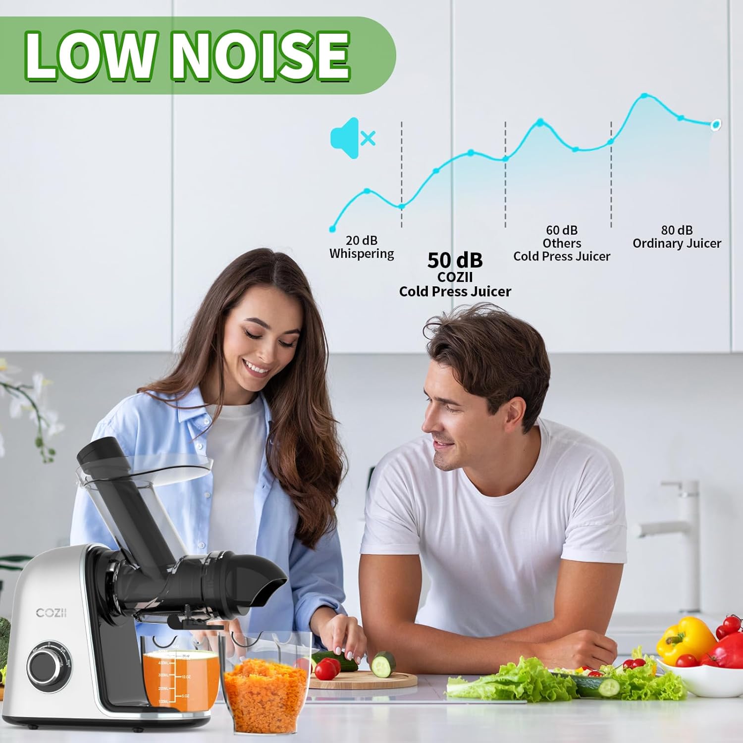 - Funcionamiento seguro y silencioso: nuestro exprimidor de prensa en frío está equipado con chips de protección inteligentes, lo que hace que se detenga automáticamente por cada 20 minutos de funcionamiento. El diseño de canal de alimentación en forma de y evita que tus manos se lesionen. Nuestros exprimidores lentos funcionan a un nivel silencioso, perfecto para jugos temprano en la mañana o tarde en la noche sin molestar a tu hogar.