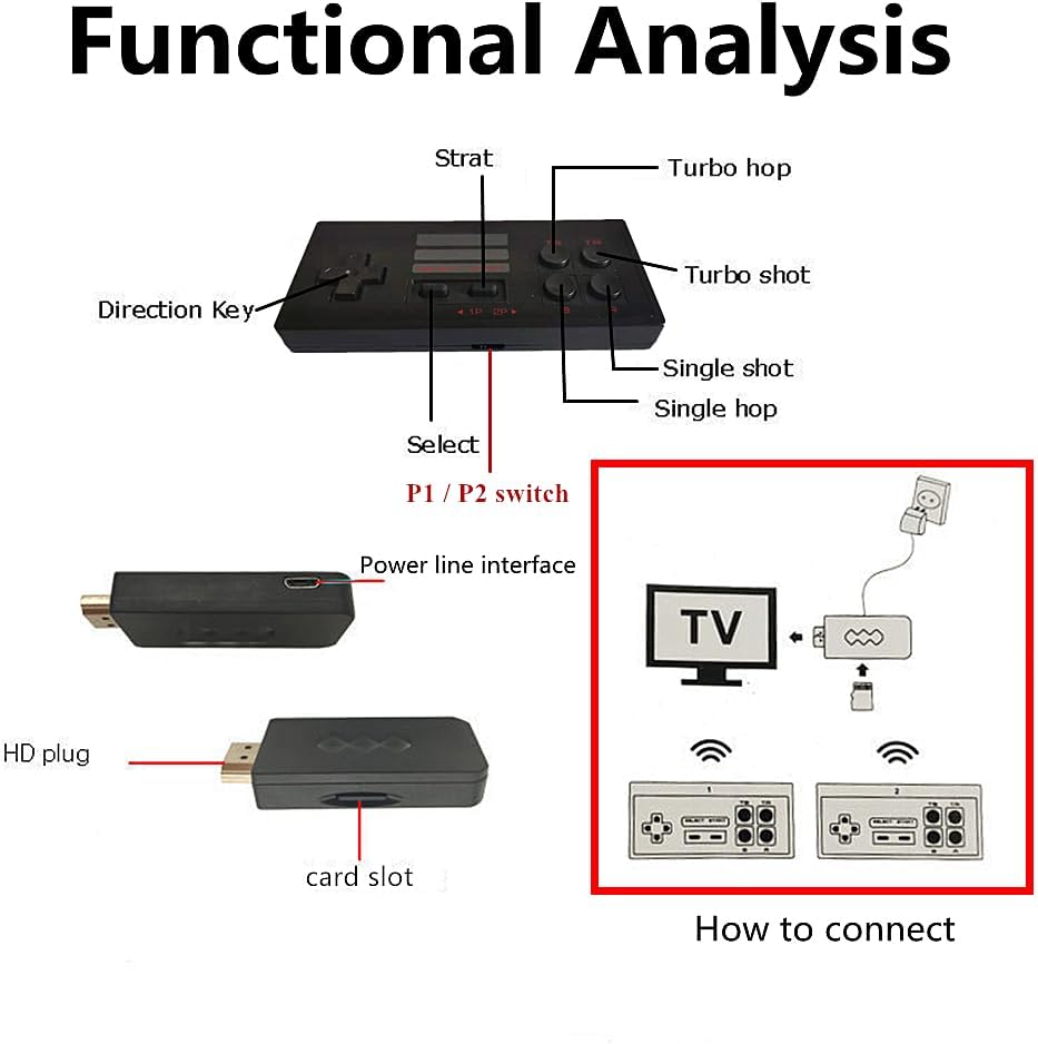 - Controladores inalámbricos: esta caja de mini juegos extremos está equipada con 2 controladores inalámbricos. Sin la limitación de cables, el juego es más gratuito y sin restricciones. Puedes compartir la diversión de jugar con tu familia y amigos.