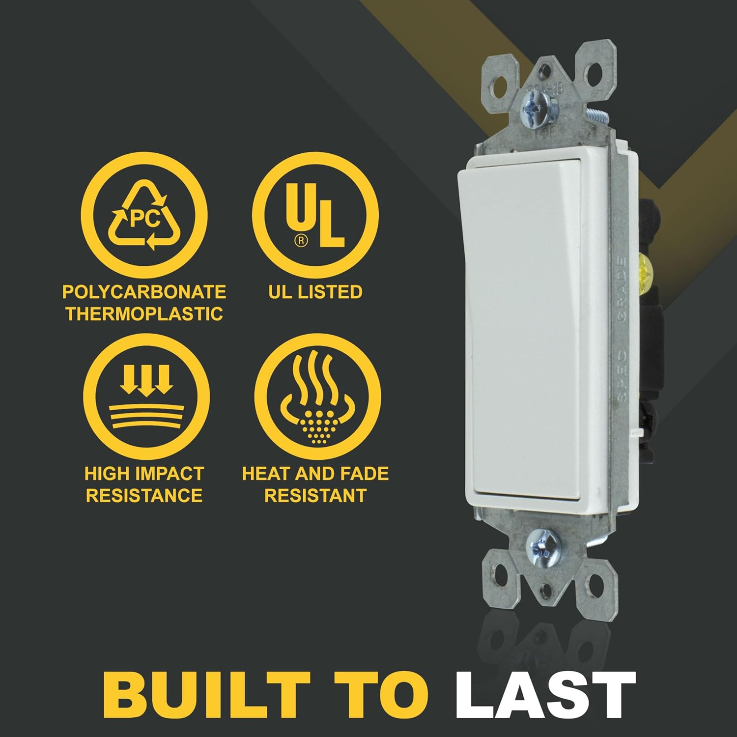 - Actualización elegante: los interruptores de luz decorativos modernos son perfectos para uso residencial, como en casas, apartamentos, condominios, así como la mayoría de las áreas comerciales que requieren interruptores de 15 amperios