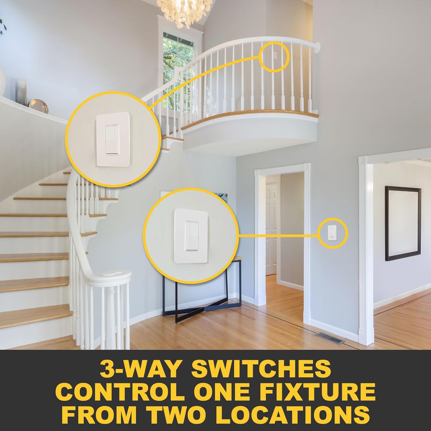 - Acabado brillante: cada interruptor de luz blanca brillante es fácil de limpiar y tiene una acción de paleta suave y satisfactoria