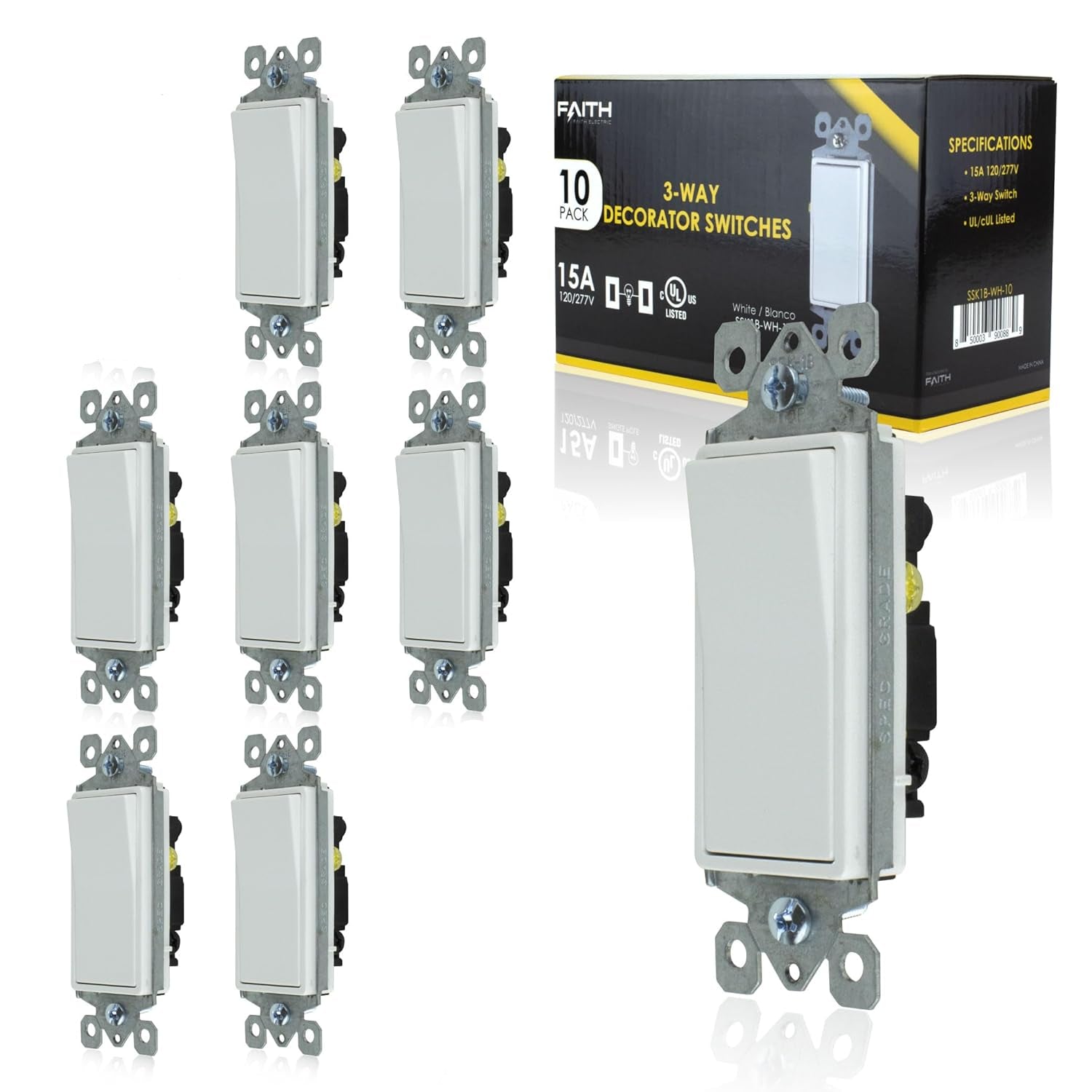 - Fácil instalación: el interruptor de luz basculante Faith está diseñado con un diseño poco profundo para caber fácilmente en cajas de conexiones estándar y admite la instalación de cableado lateral y de empuje
