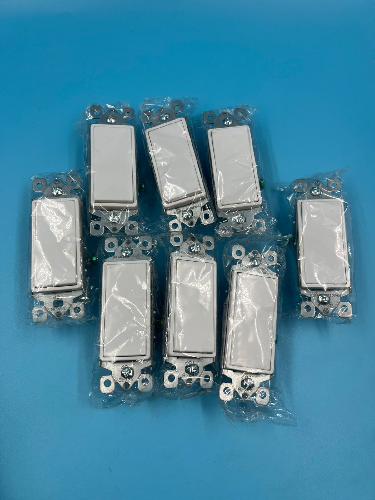 - Especificaciones: paquete de 8 unidades de 15 A, 120 V-277 V CA, interruptor de luz de 3 vías, blanco brillante, listado UL/cUL