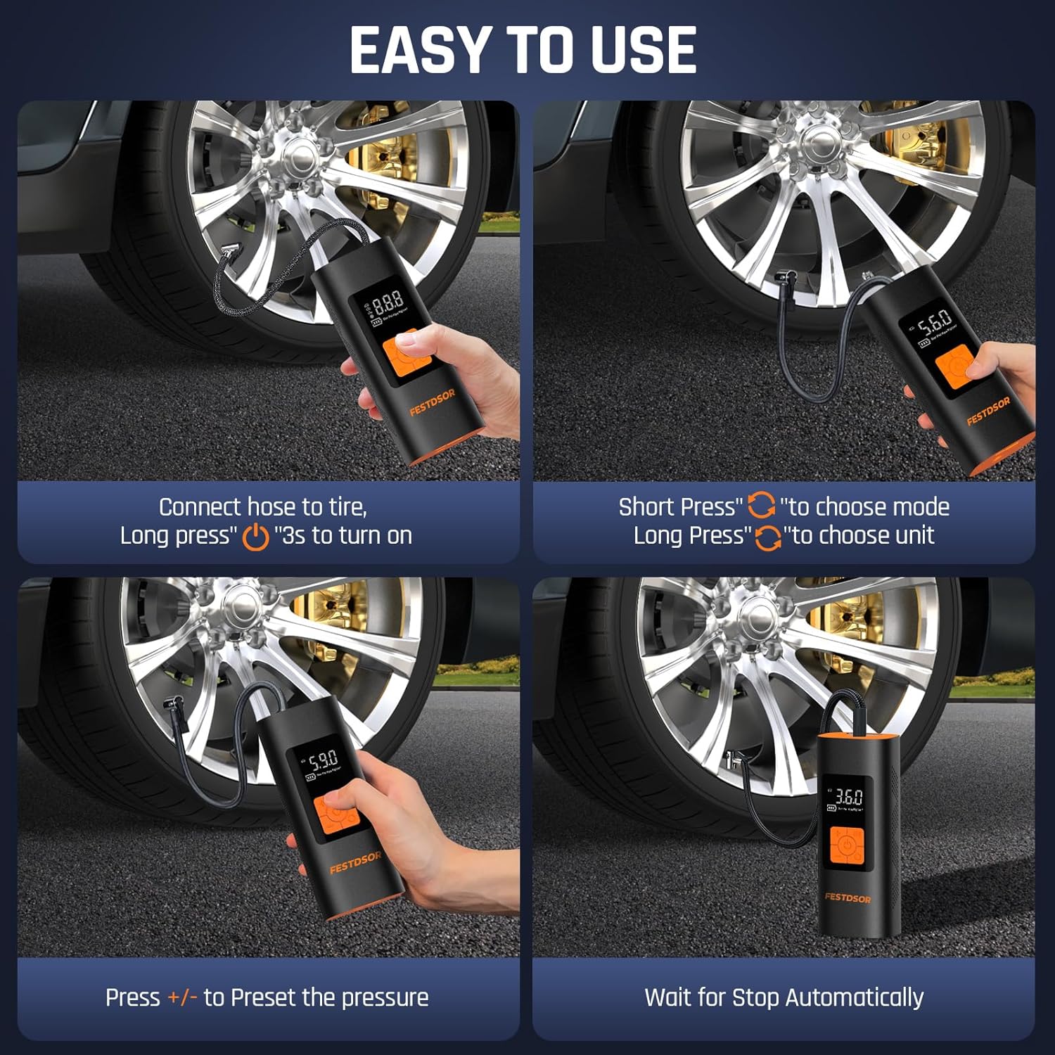 FESTDSOR - Inflador de neumáticos portátil, bomba de aire para neumáticos de coche.