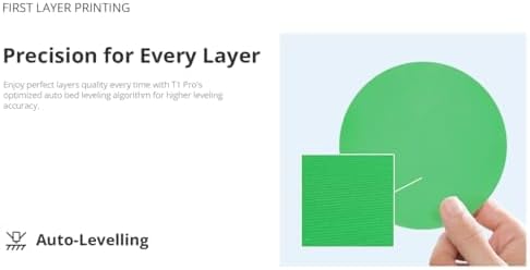 - La impresora 3D cerrada T1 Pro utiliza un sistema asistido inteligente, lo que le permite realizar impresiones de excelente calidad. Por ejemplo, la nivelación automática de la cama y la compensación de vibración garantizan que las líneas de capa de tu proyecto se puedan imprimir perfectamente. La función de pérdida de energía permite reanudar la impresión después de un fallo de energía, sin que la impresión falte o tenga que empezar de nuevo. La detección del filamento controla de cerca el estado del filamento y detiene la impresión si se detecta un problema