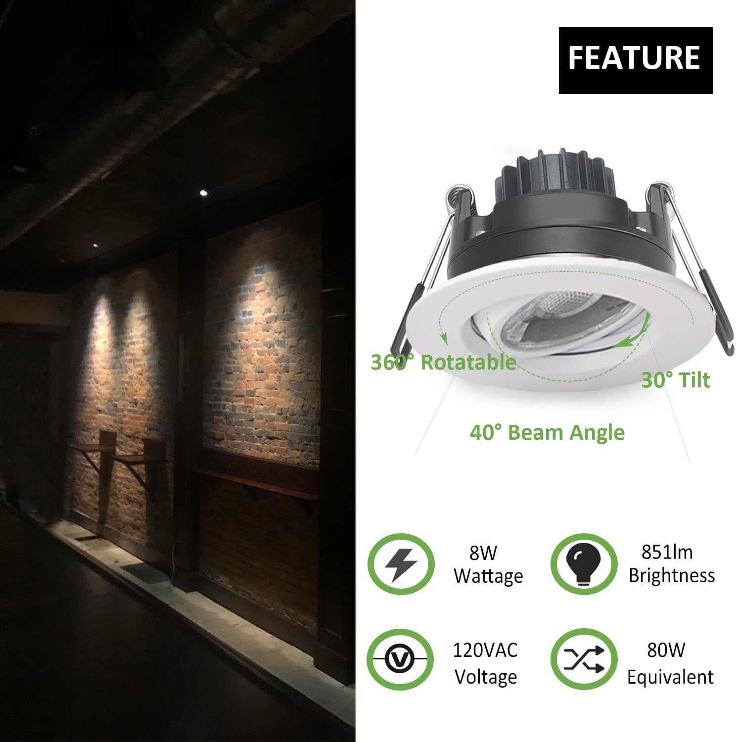 - Rendimiento de atenuación suave: la luz empotrable LED cardán funciona con atenuadores triac, atenuación suave del 5% al 100% sin parpadeos ni zumbidos.