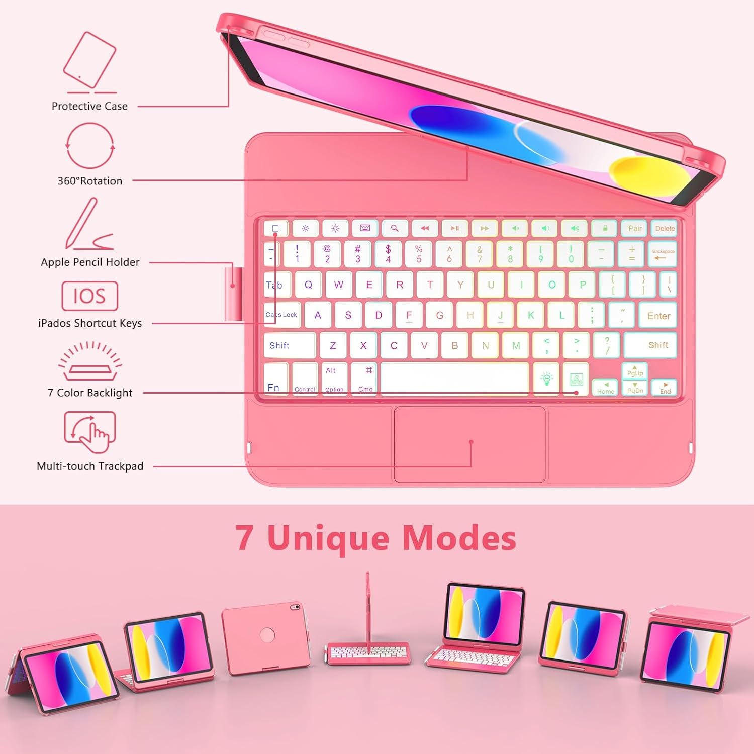 Funda de teclado retroiluminado de 7 colores para iPad : escribe rápida y precisa en un teclado similar a una computadora portátil con una fila completa de atajos de tablet que permiten que una retroiluminación LED RGB ajustable de 7 colores brille a través.