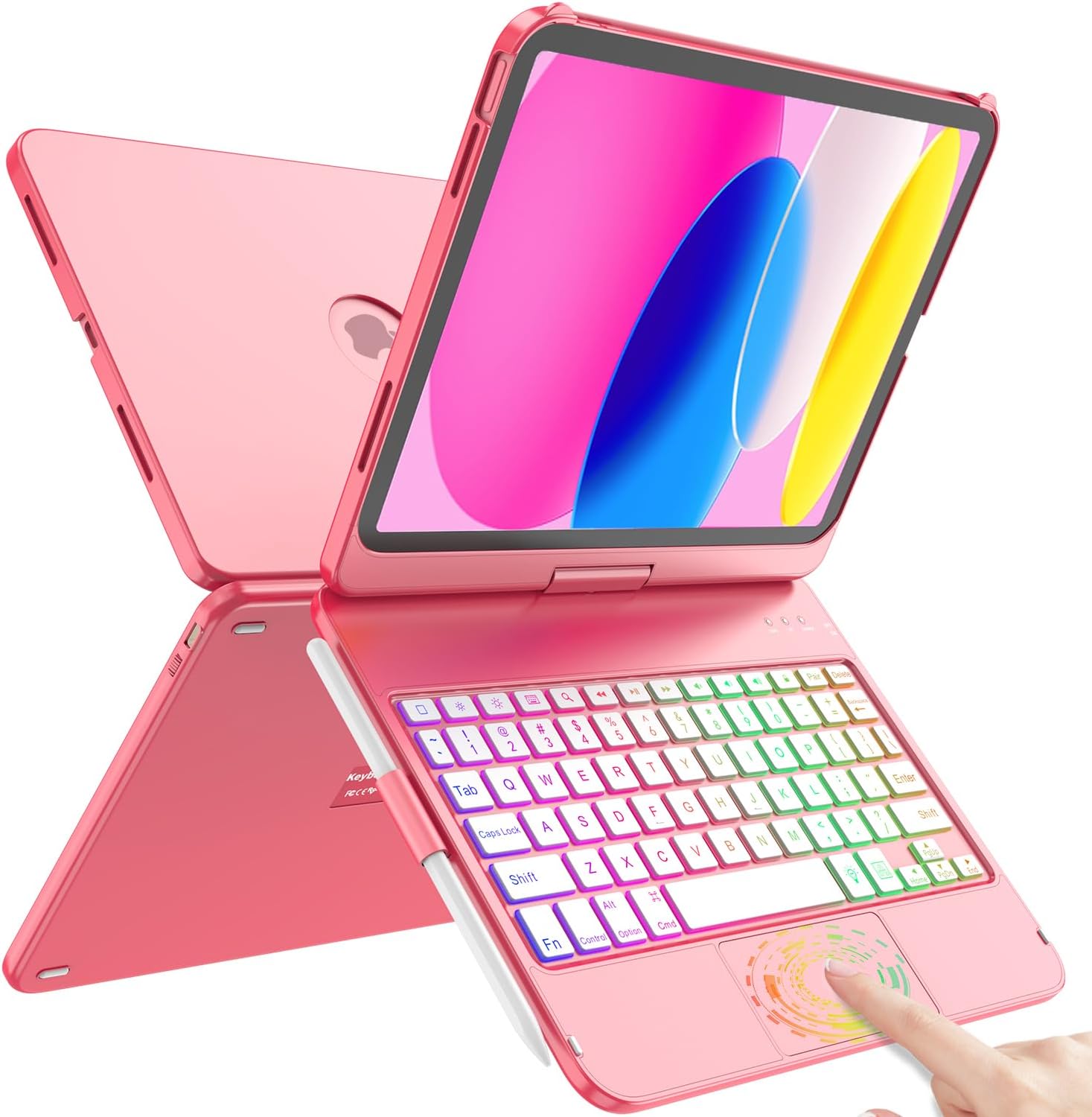 FUWANG - Funda con teclado táctil para iPad. 360° rotación, con teclado retroiluminado multitáctil.