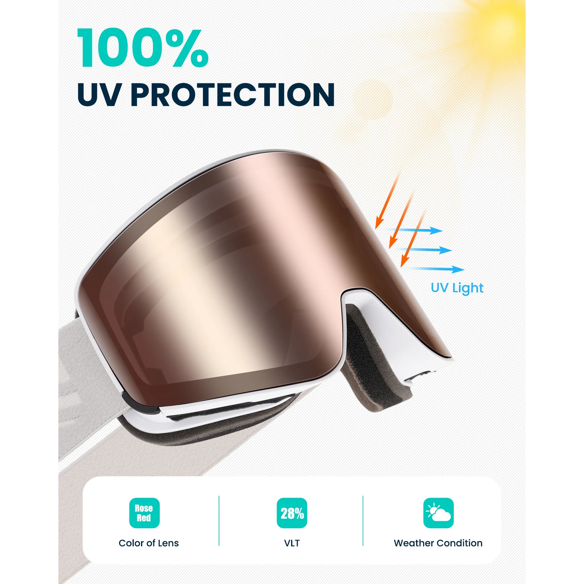 - Sistema de lentes intercambiables: equipado con 8 imanes fuertes, las lentes se pueden sujetar firmemente y se pueden intercambiar en segundos, incluso mientras se usan guantes. Puedes cambiar la lente adecuada para tus gafas de esquí para adaptarse a diferentes condiciones climáticas y de día o de noche. Los lentes adicionales se venden por separado