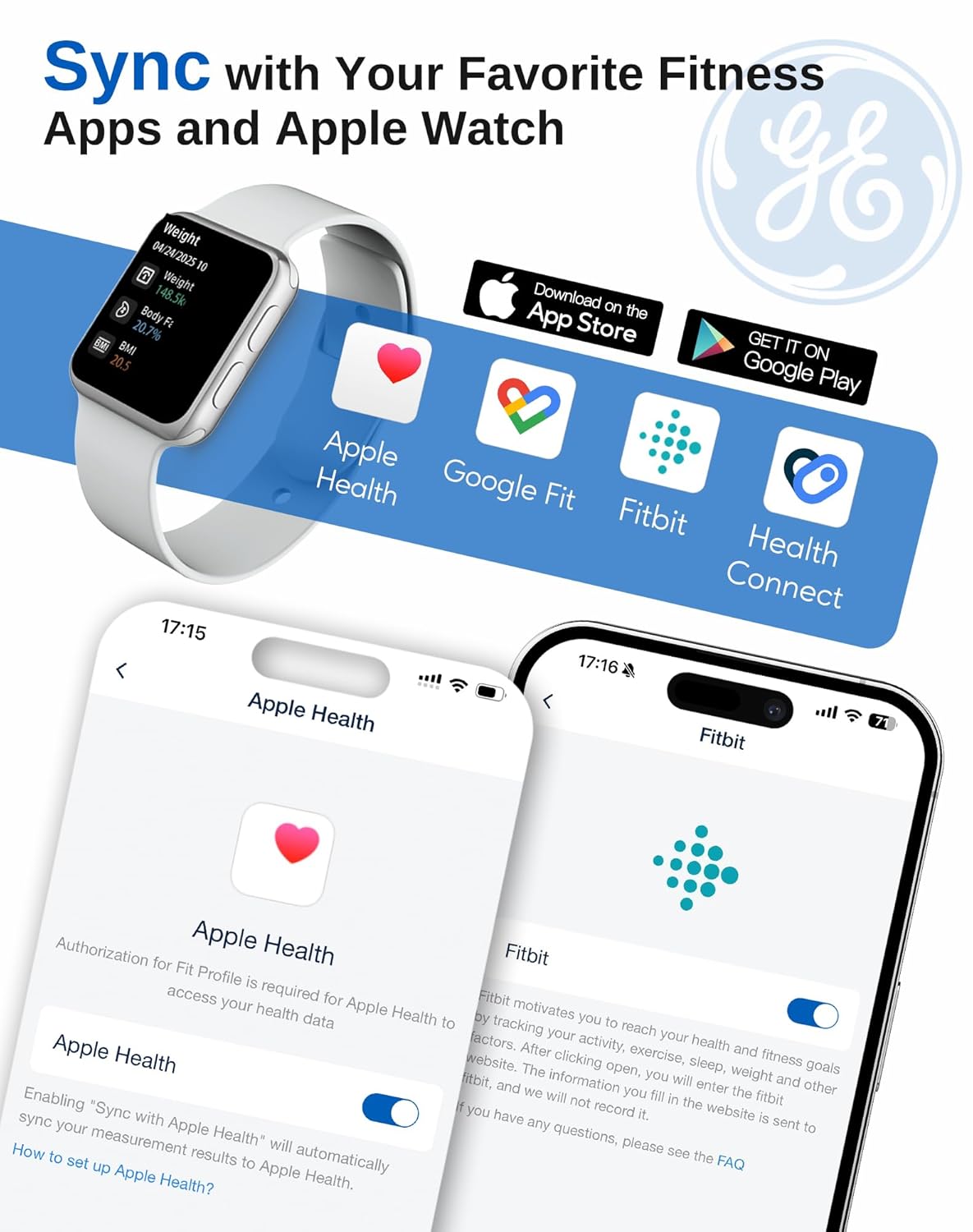 GE Báscula inteligente para peso corporal y grasa.