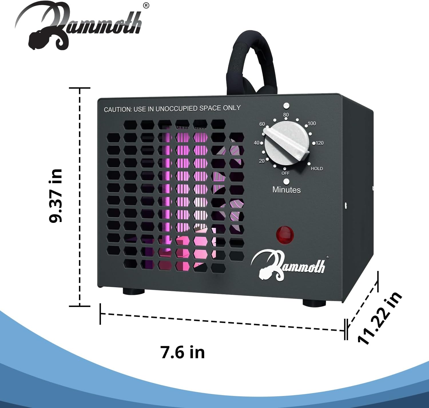- El eliminador de olores de ozono Mammoth produce 70,000 mg/h de ozono para combatir los olores fuertes de humo, mascotas, moho y más. Este eliminador de olores fuertes es perfecto para eliminar olores fuertes en hogares, automóviles y espacios comerciales.