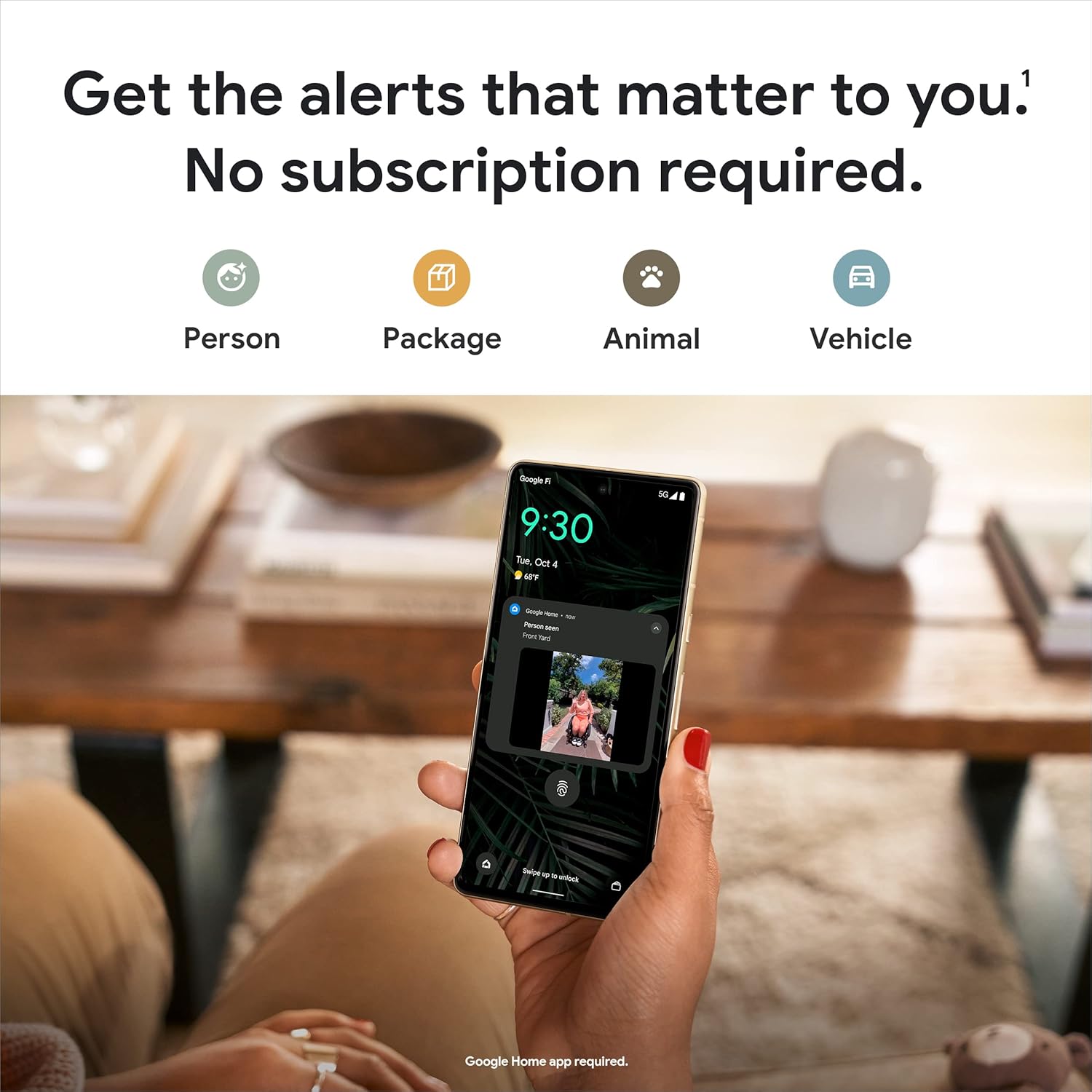 - El timbre Nest Doorbell con cable puede marcar la diferencia entre una persona, paquete, animal y vehículo; recibe alertas sobre las cosas que más te importan, no requiere suscripción [1]. Campo de visión: diagonal de 145° con relación 3:4