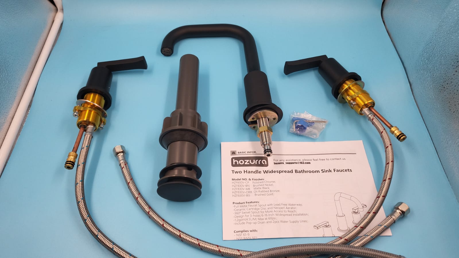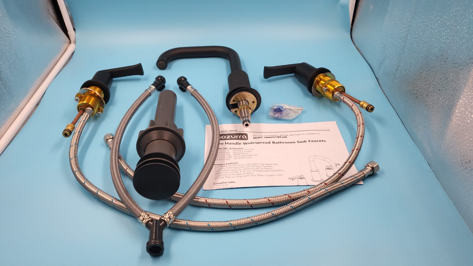 - La palanca de DOS MANIJAS facilita el ajuste del volumen y la temperatura del agua; Incluye desagüe emergente de plástico con acabado a juego con orificio de desbordamiento y 2 líneas de suministro de agua de 600 mm.