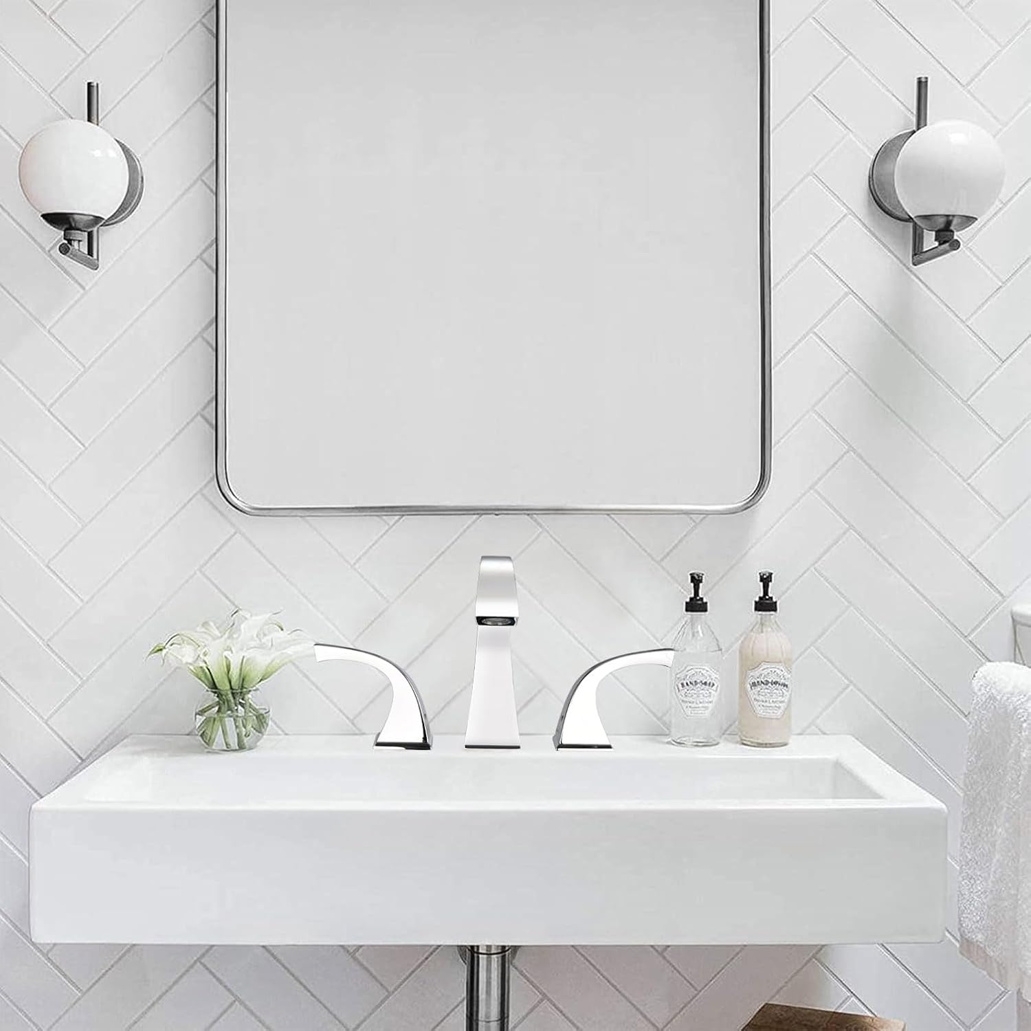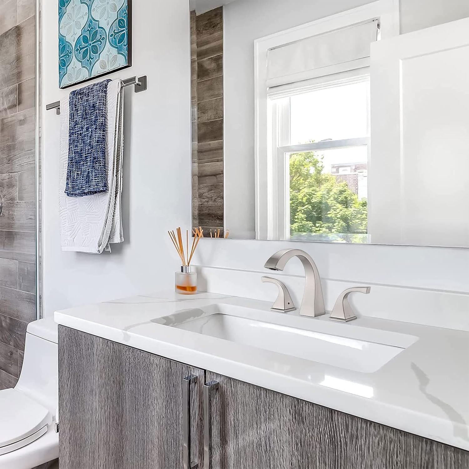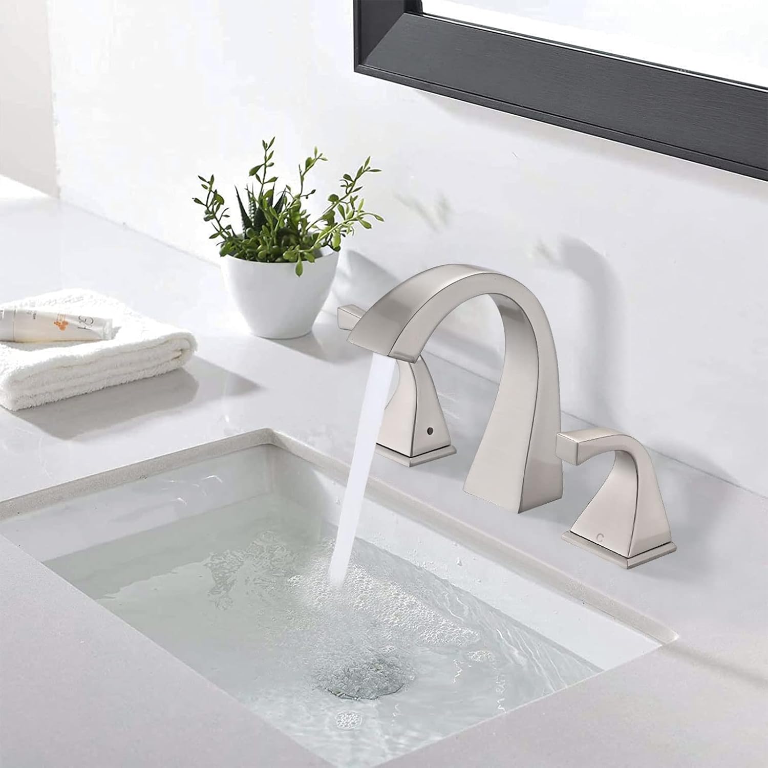 Materiales de primera calidad: Fabricado en latón macizo duradero, nuestro grifo para lavabo de baño de amplia apertura cuenta con la certificación cUPC, lo que garantiza la seguridad de su agua potable diaria. Su acabado dorado cepillado no solo realza su atractivo estético, sino que también resiste eficazmente arañazos, corrosión y deslustre. Diseño de amplia apertura: Diseñado según las normas estadounidenses, es apto para configuraciones de amplia apertura de 3 orificios y 8". Equipado con un aireador NEOPERL para un flujo de agua suave y sin salpicaduras. Diseño de dos manijas: El grifo cuenta con un práctico diseño de dos manijas que permite un control preciso del volumen y la temperatura del agua. Los cartuchos cerámicos antigoteo garantizan un flujo de agua uniforme y permiten ajustes de temperatura independientes.