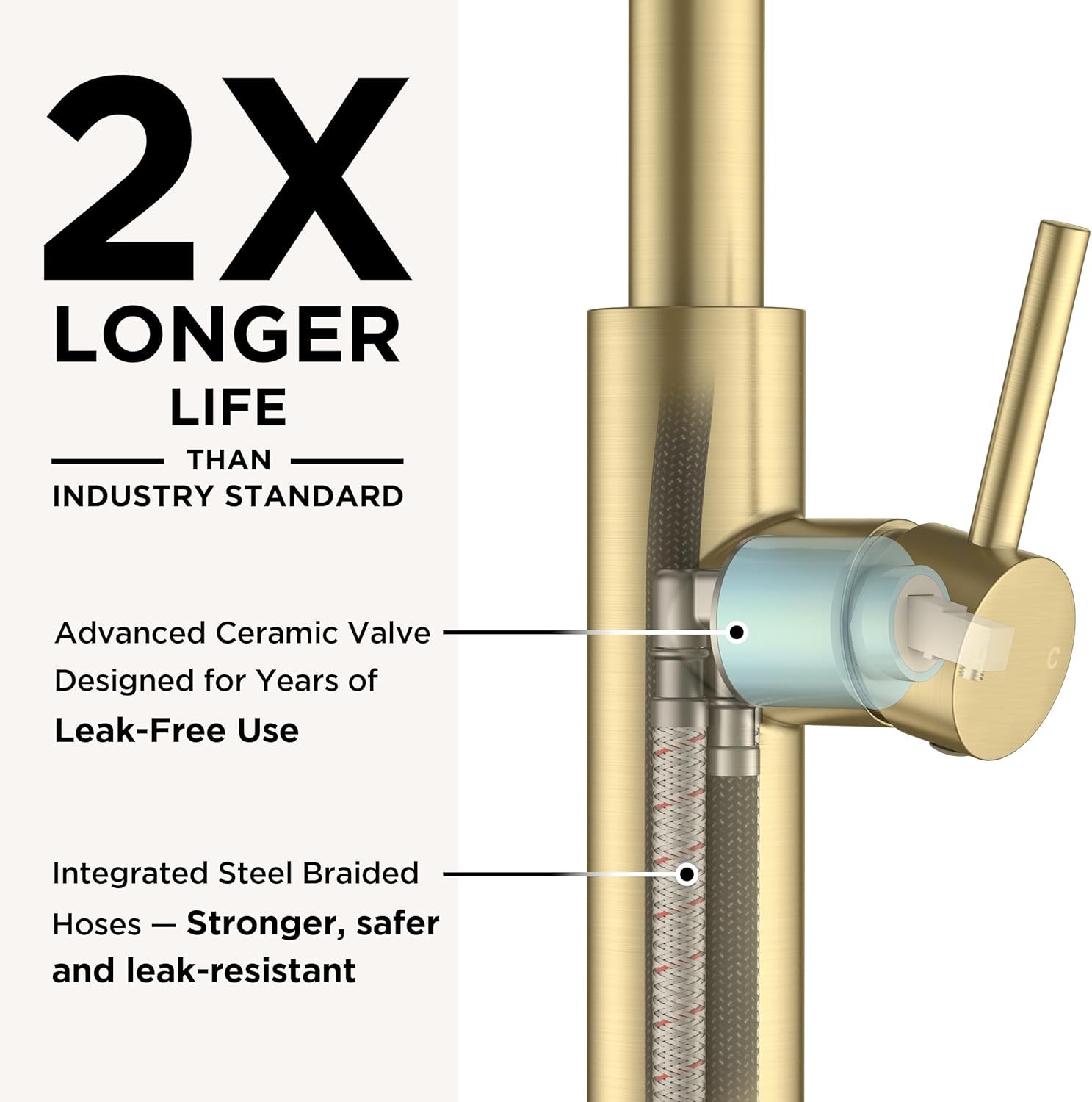- Cartucho de cerámica sin plomo para un uso confiable: construido con una válvula de cerámica sin plomo probada durante más de 500,000 ciclos, este grifo de cocina con pulverizador desplegable garantiza un funcionamiento suave y sin goteo durante años. Experimenta un flujo de agua constante y una calidad confiable en la que puedes confiar.