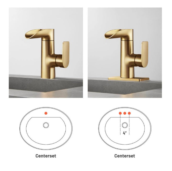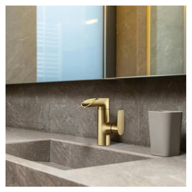 Grifo para baño Waterfall de una manija y un solo orificio, de arco bajo