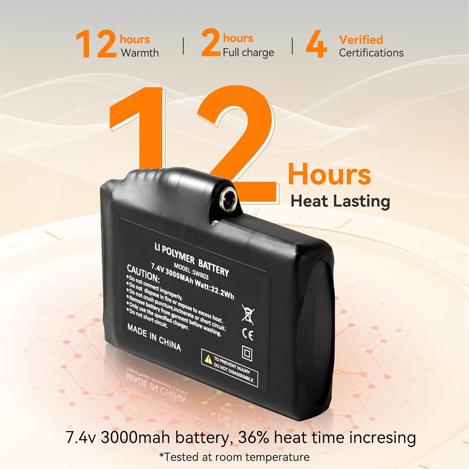 - Carga rápida y baterías de larga duración: Equipados con baterías recargables dobles de 3000 mAh (7.4 V/7.5 W), estos guantes calefactados ofrecen hasta 10 horas de calor continuo. El cargador de doble puerto incluido garantiza una carga rápida y cómoda en solo 2 horas, manteniéndote listo para cualquier aventura.