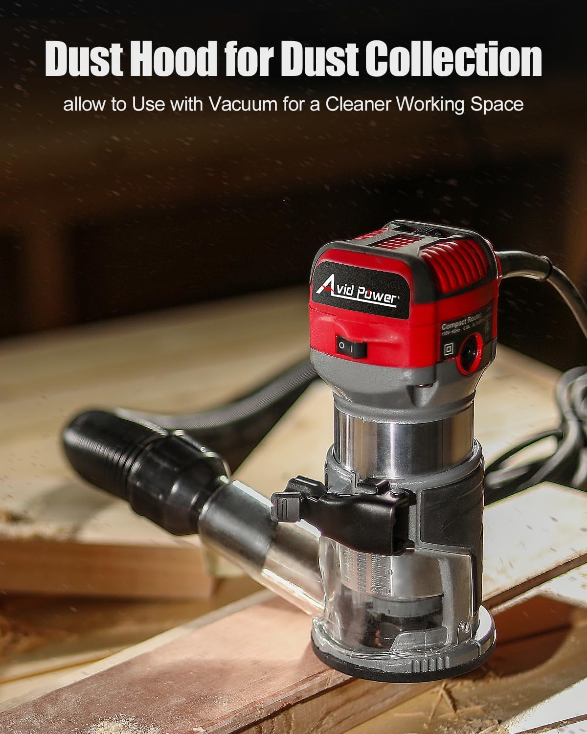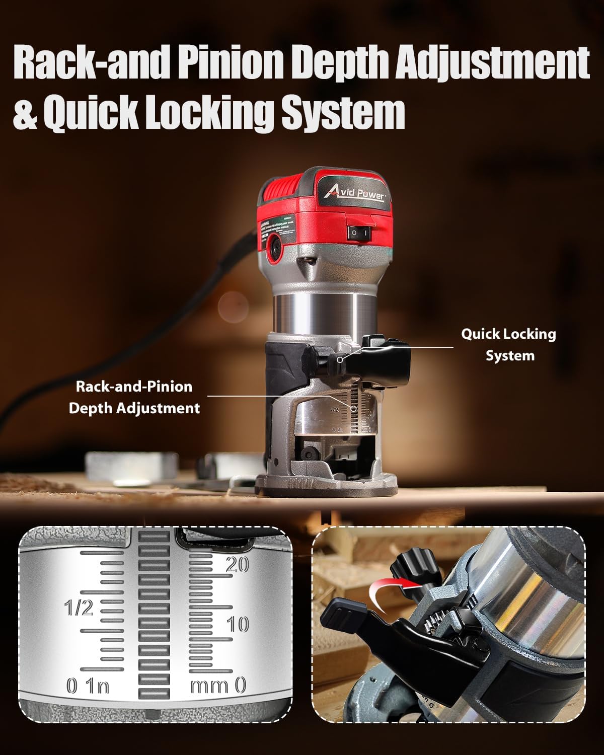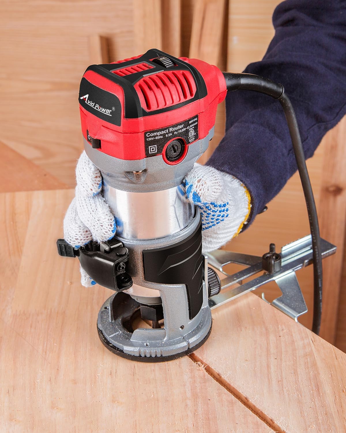 AVID POWER - Herramientas de enrutador compacto de 6,5 amperios y 1,25 HP para carpintería, enrutador de madera de base fija con brocas de recorte, 6 velocidades variables, guía de borde.