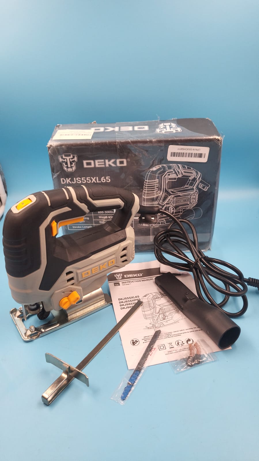 DEKO 220V DKJS55XL65 550W JIG SAW herramientas eléctricas para carpintería sierra eléctrica con regla guía hoja de sierra llave Allen.