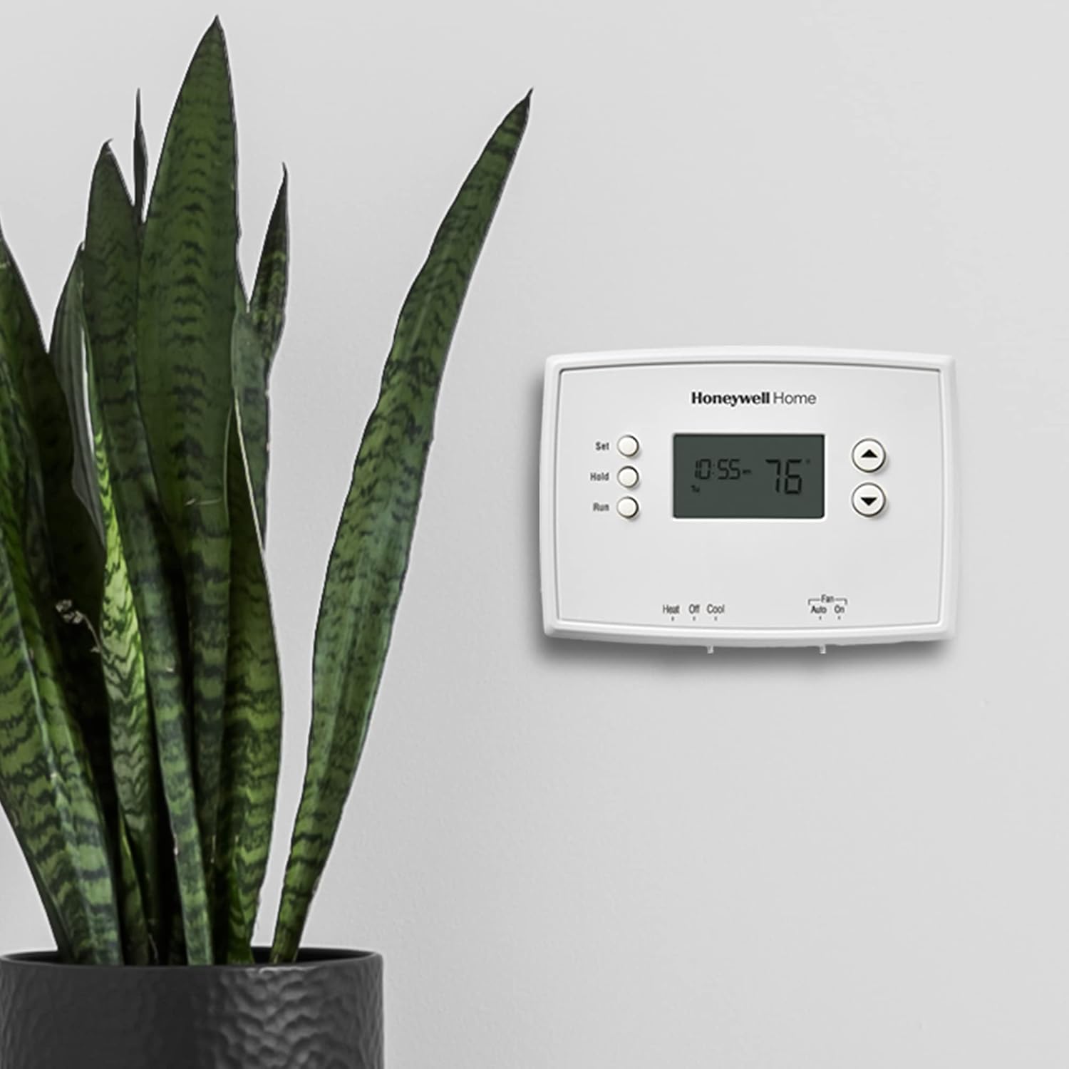 - Opciones de visualización: Fahrenheit o Celsius; reloj de 12 o 24 horas. Nota: Este termostato no está retroiluminado.