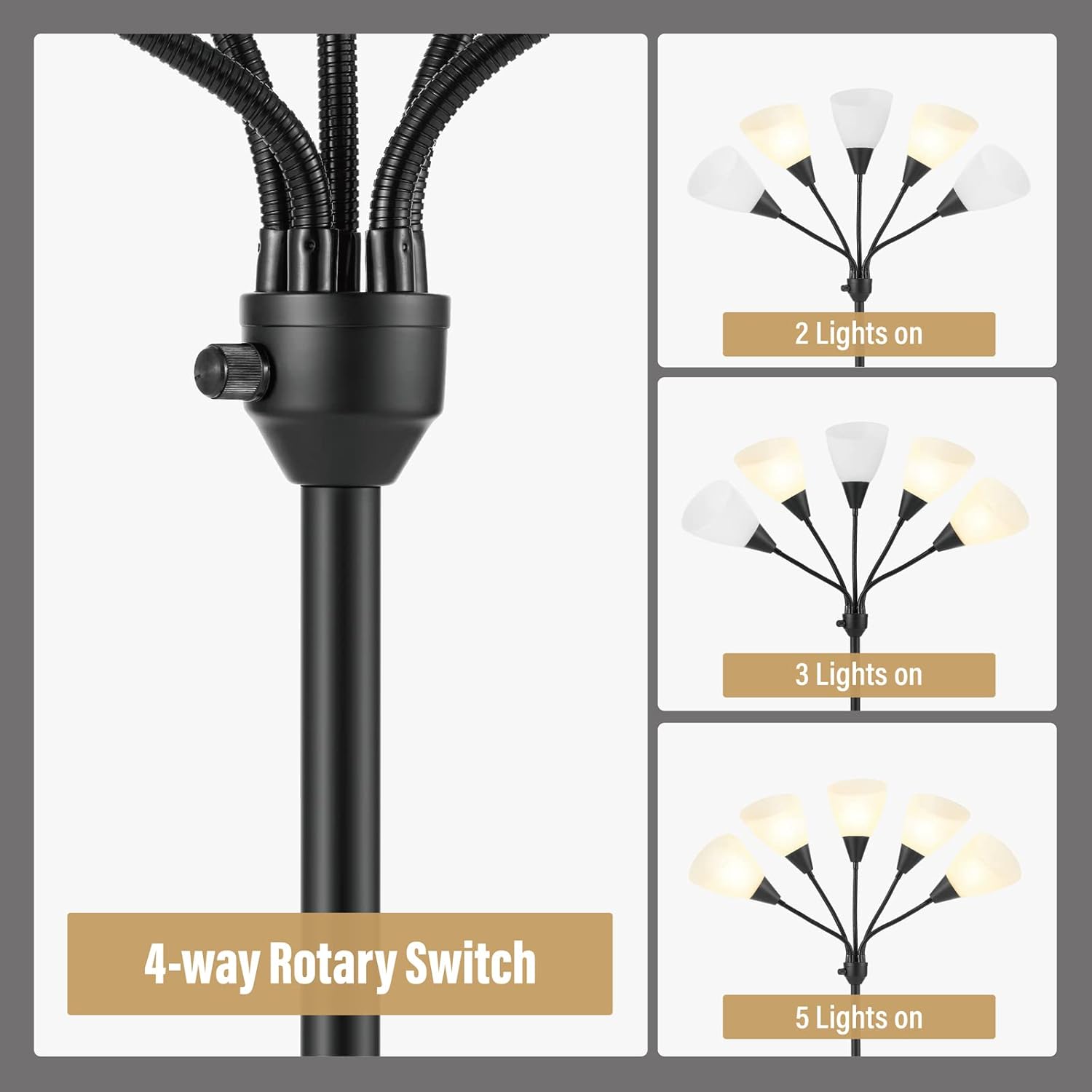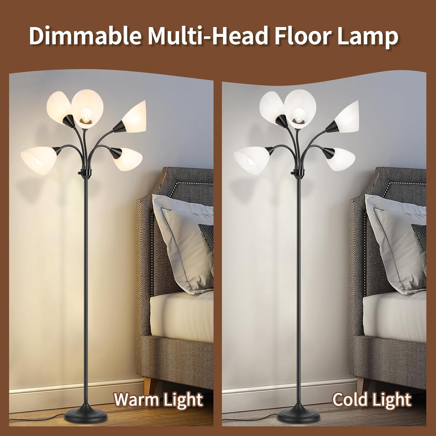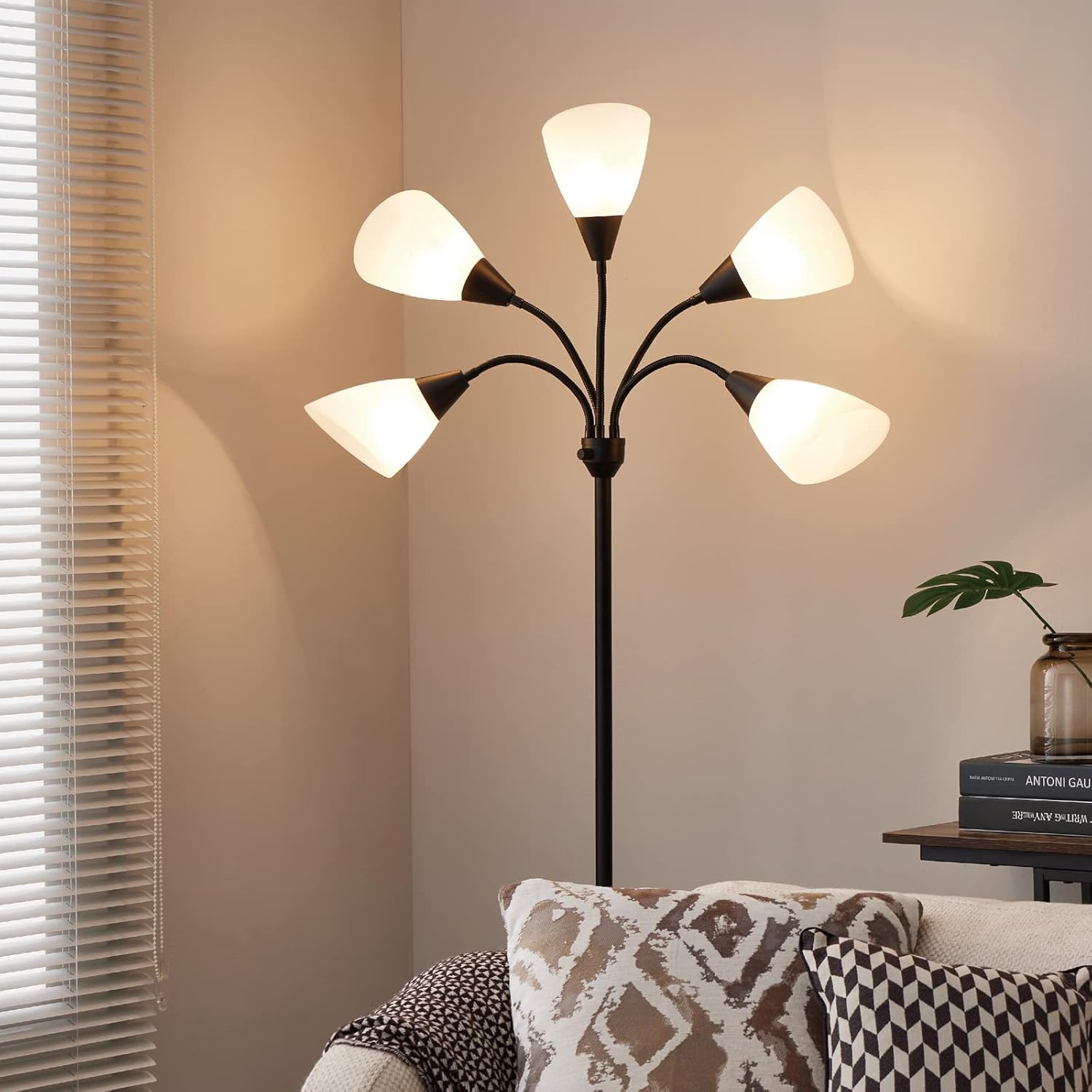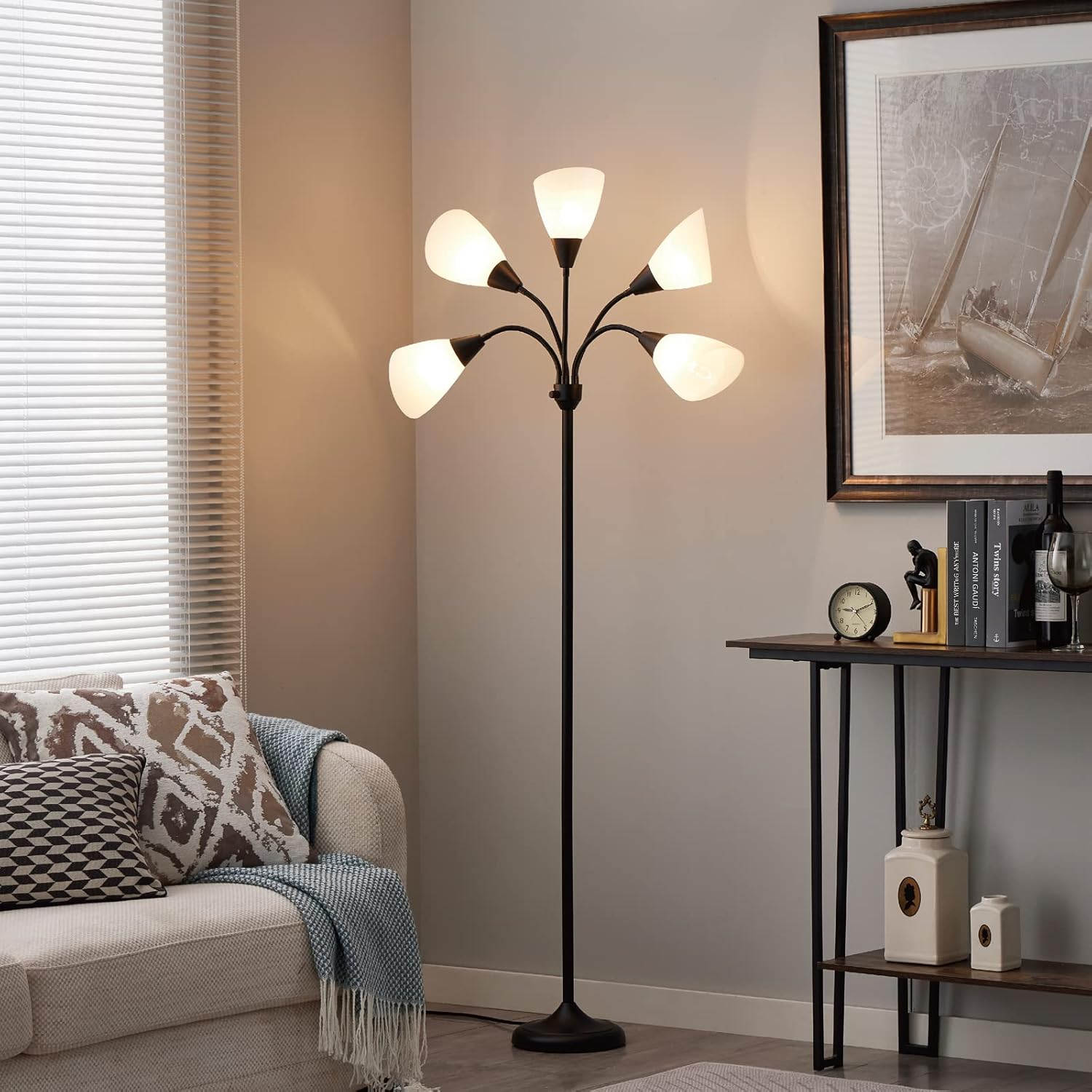 - Lámpara de pie muy funcional con luz de lectura de 5 cabezales, perfecta para usar para sala de estar, dormitorio, habitación de los niños