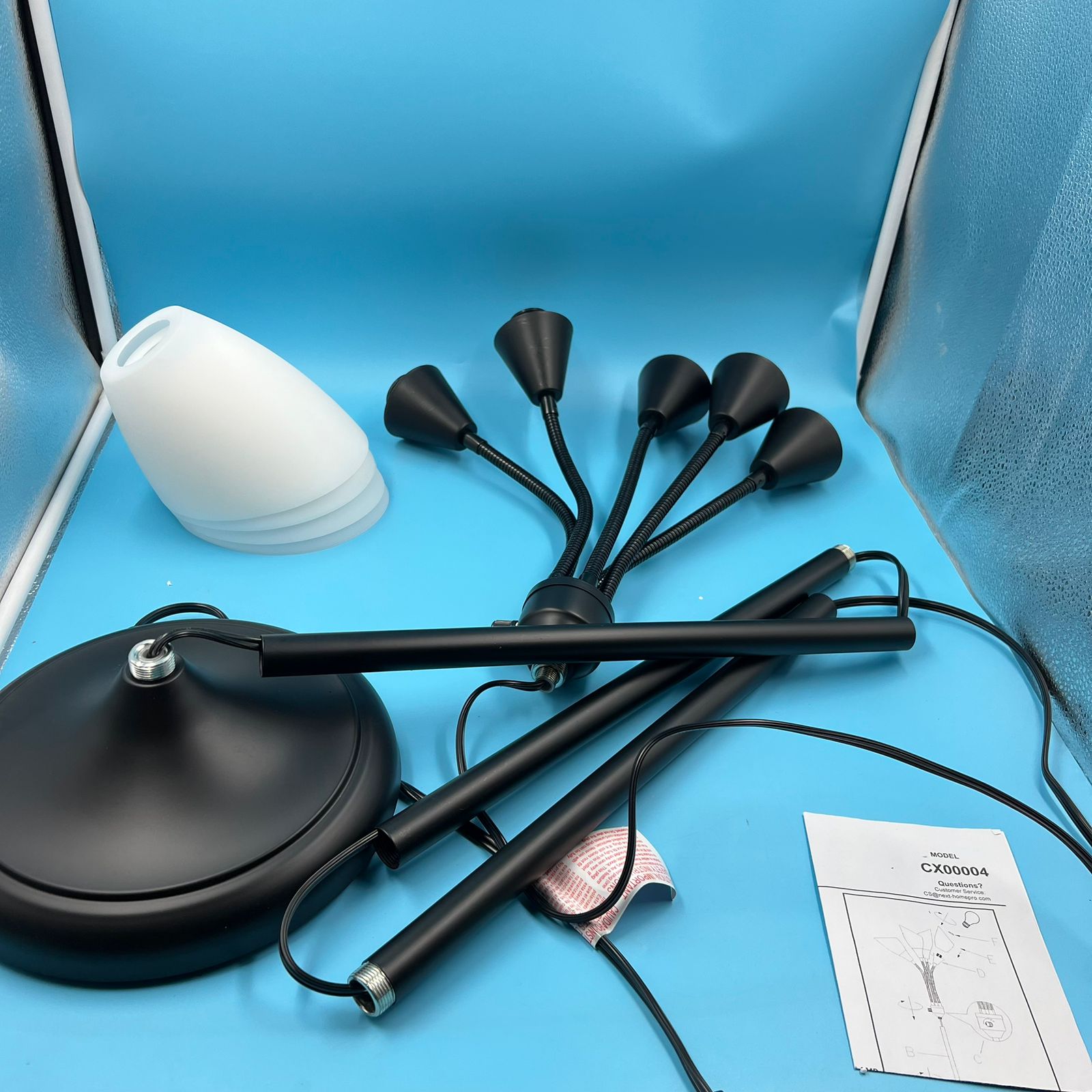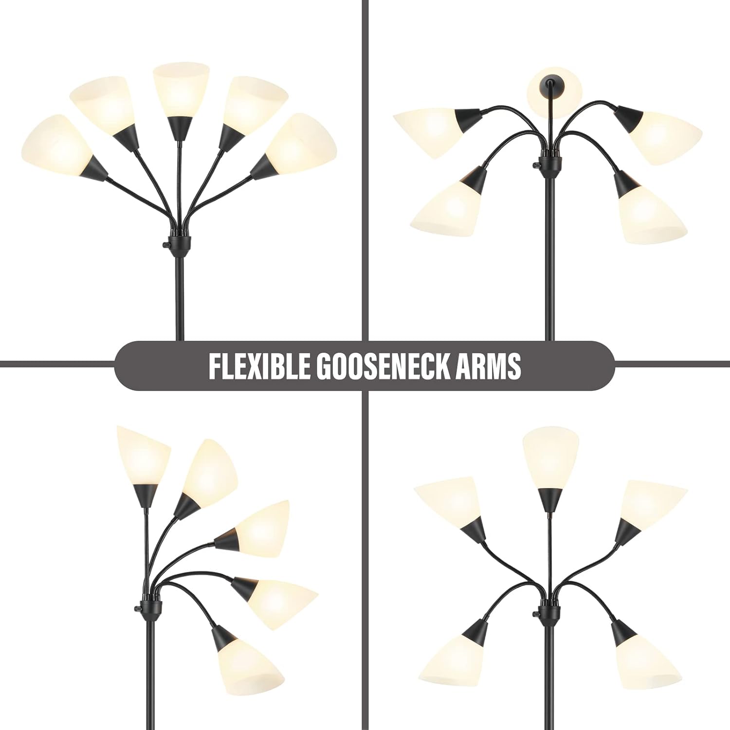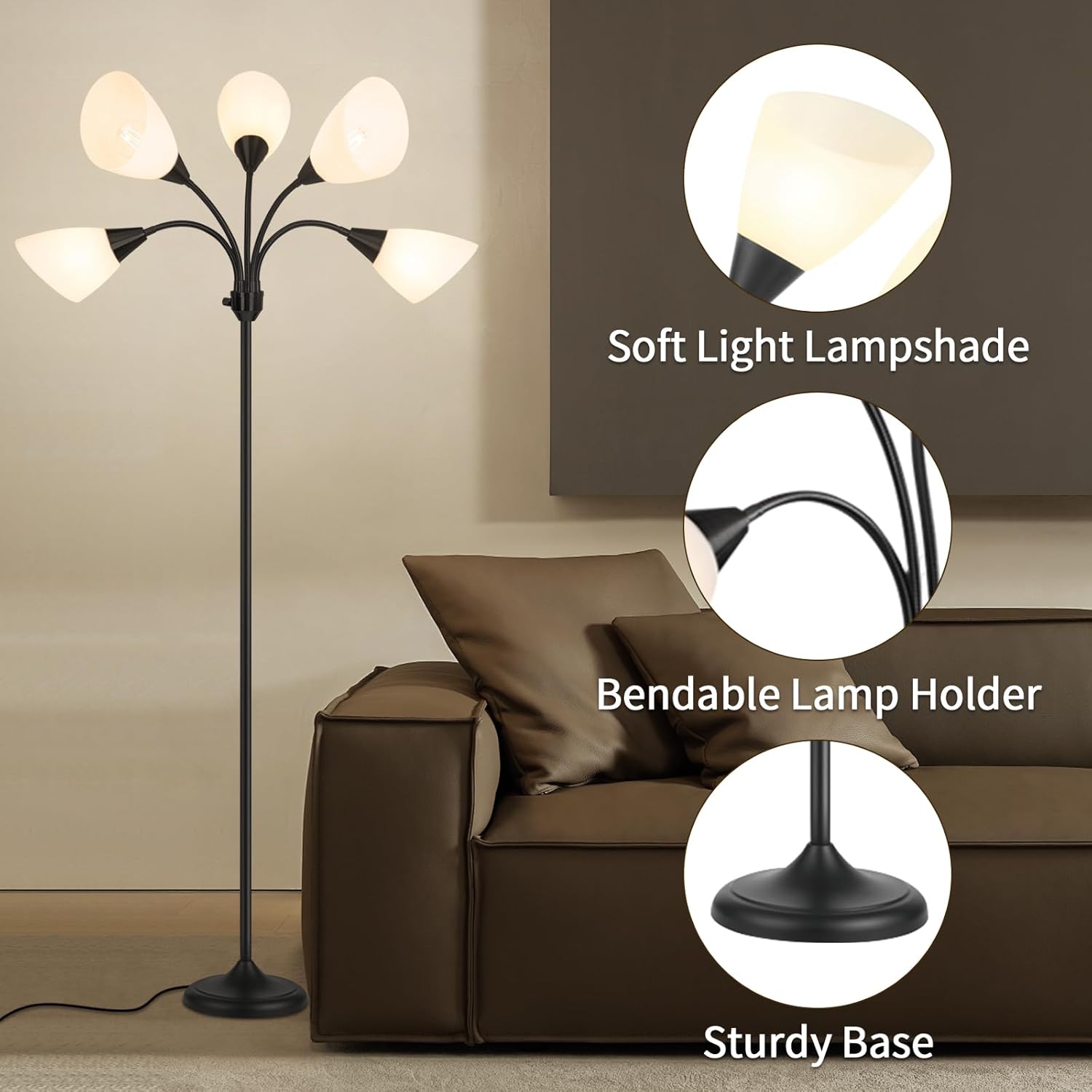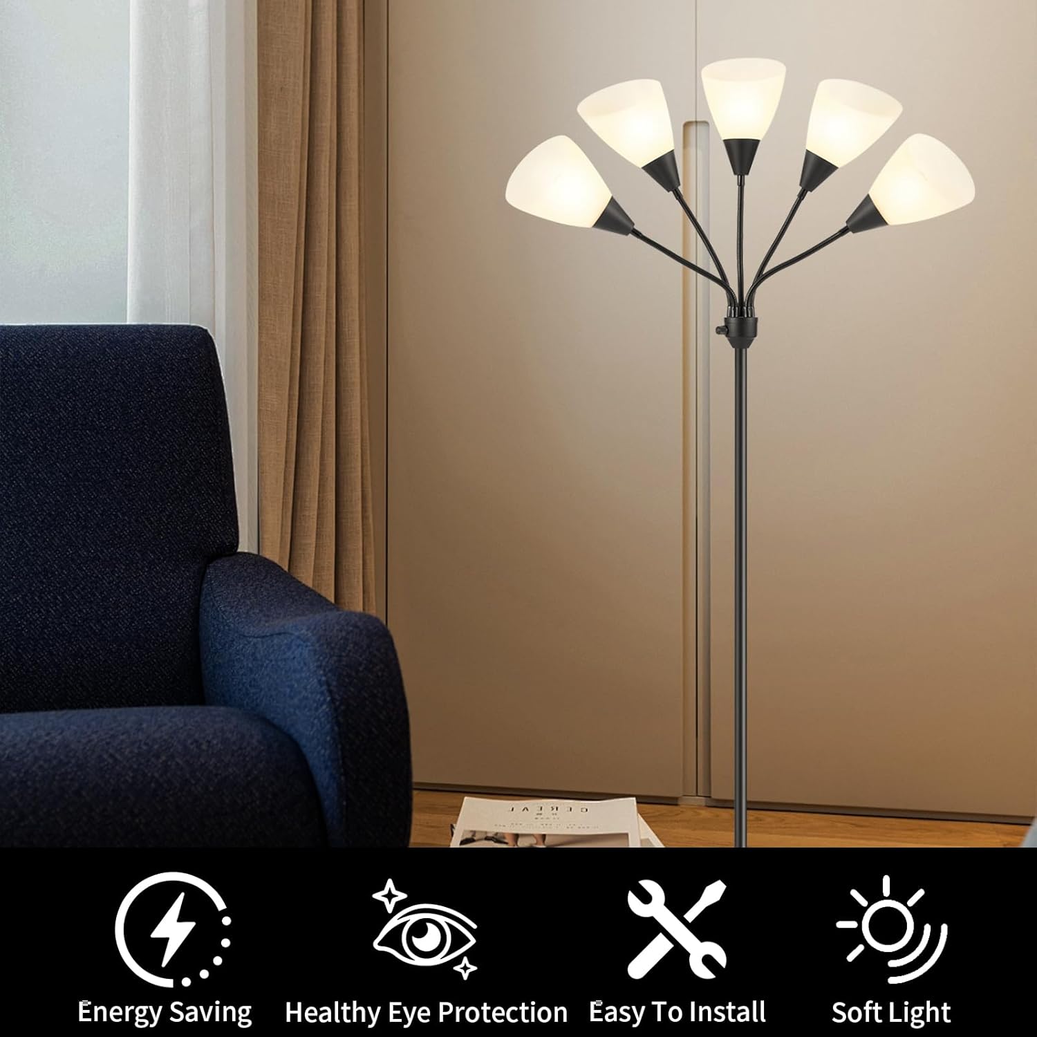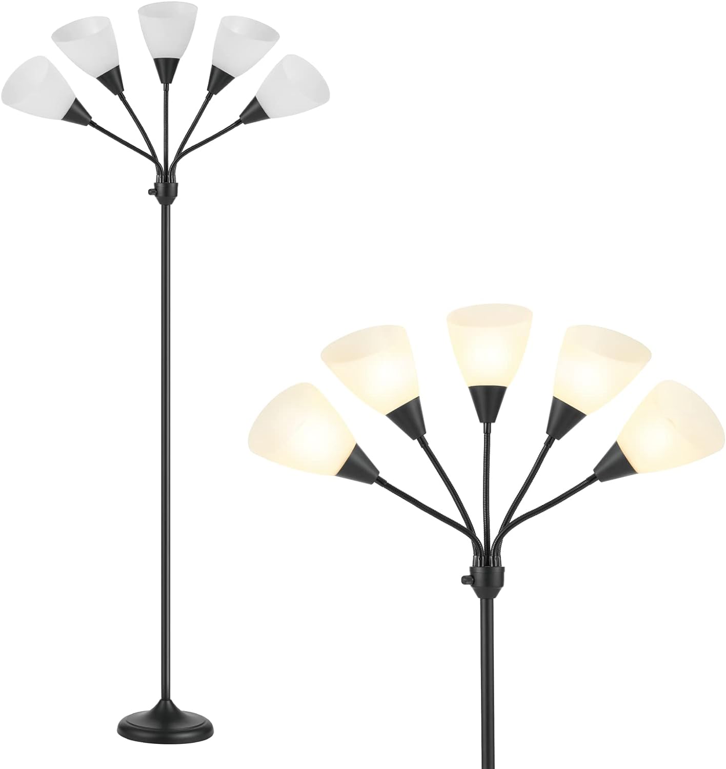 - Lámpara de pie muy funcional con luz de lectura de 5 cabezales, perfecta para usar para sala de estar, dormitorio, habitación de los niños