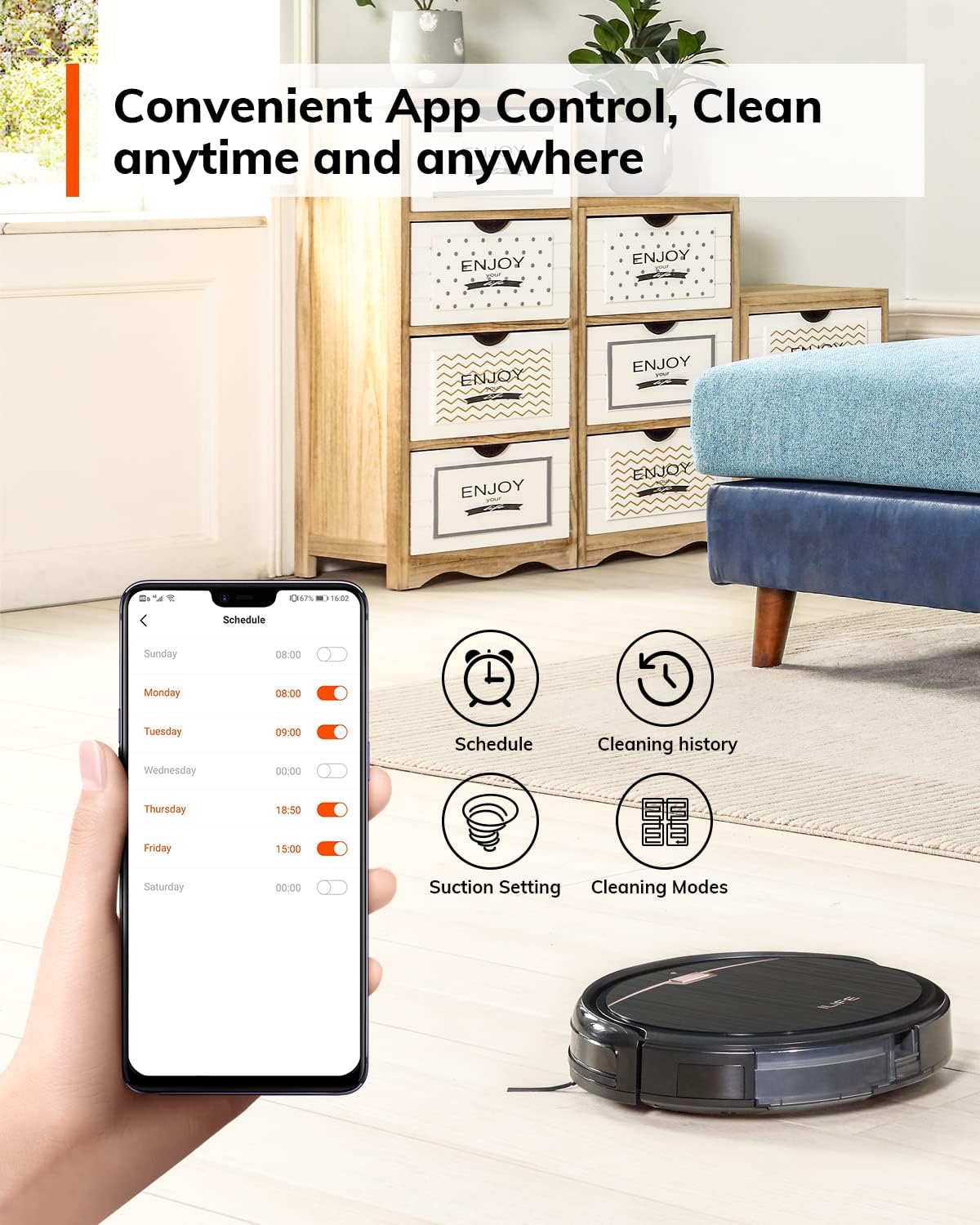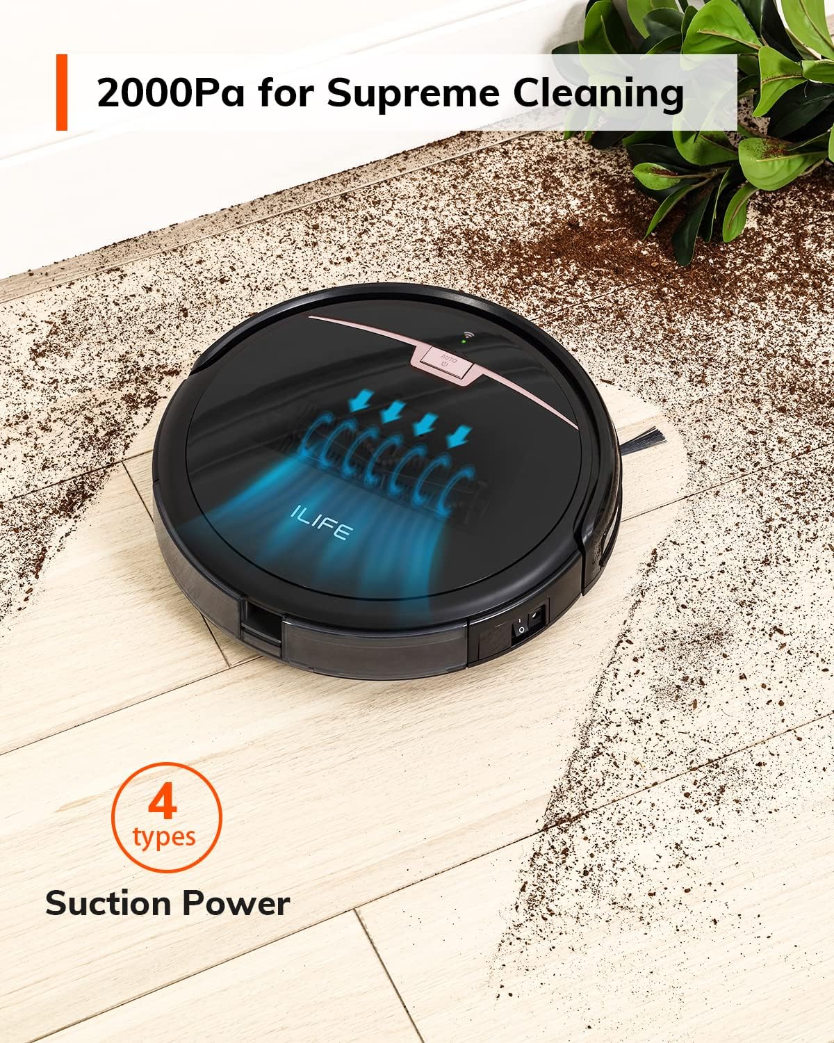 ILIFE A4s MAX Robot Aspirador, 2000Pa Succión Fuerte, Wi-Fi Conectado, 2 en 1 Cepillo Rodillo, Silencioso, Automático Auto-Carga Robot Aspirador, Limpia Pelo de Mascota.
