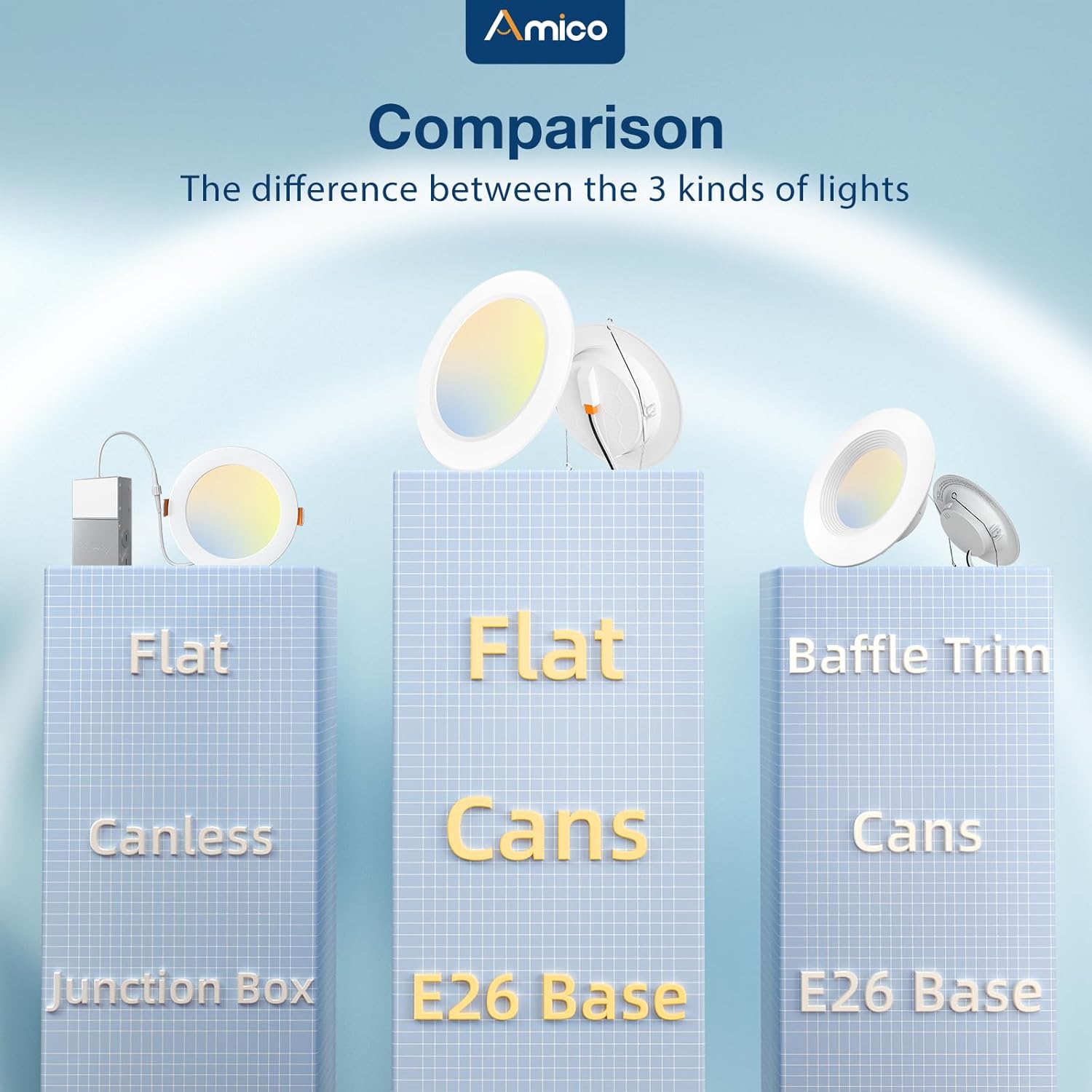 Iluminación LED empotrable de 5/6 pulgadas 5CCT, 20Pcs, AMICO.