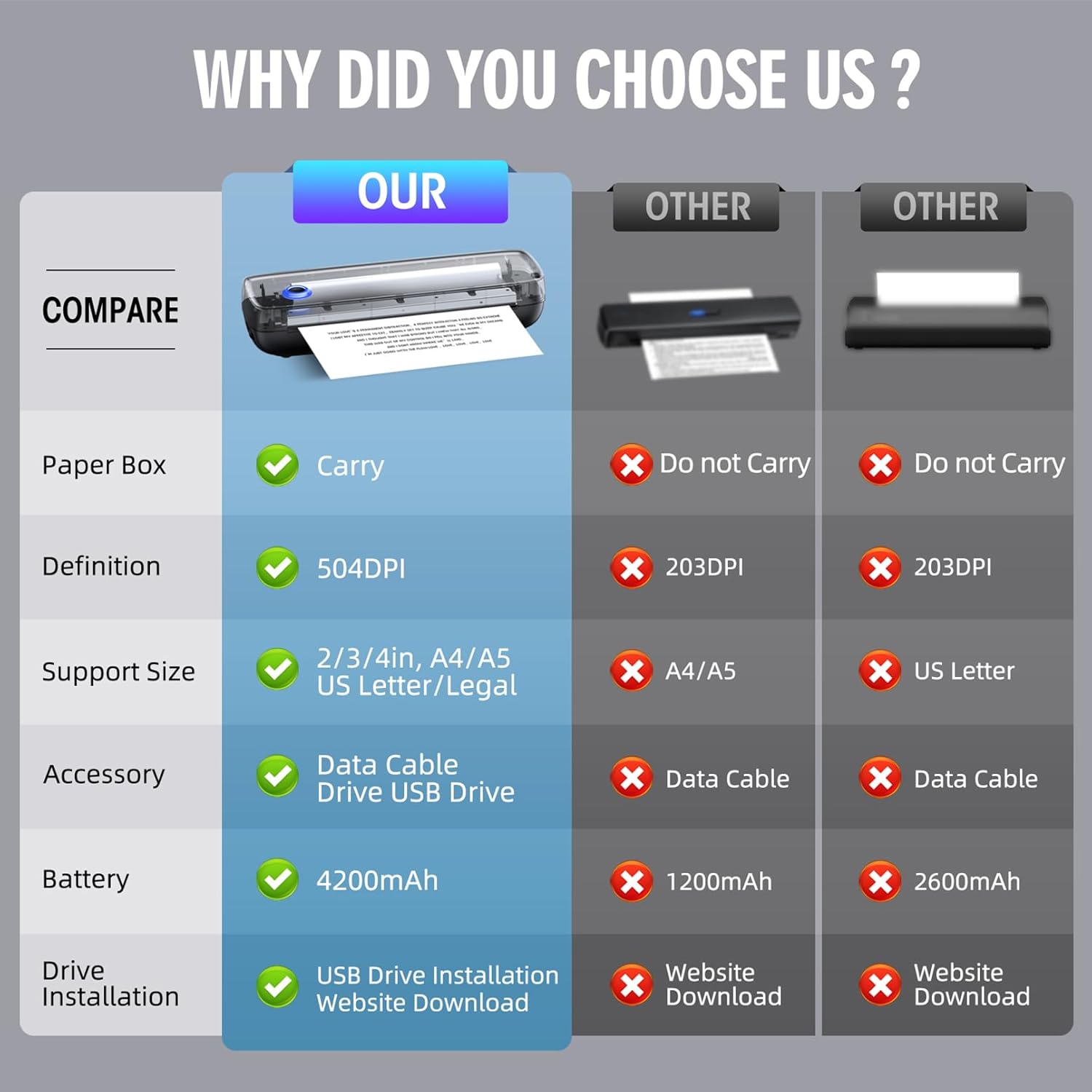 - Impresora inalámbrica: alta calidad y larga duración de la batería con impresión HD y una batería de 4200 mAh, esta impresora inalámbrica ofrece impresiones claras y admite hasta 600 páginas de cartas de EE. UU. por carga. Configure el apagado automático para ahorrar energía.