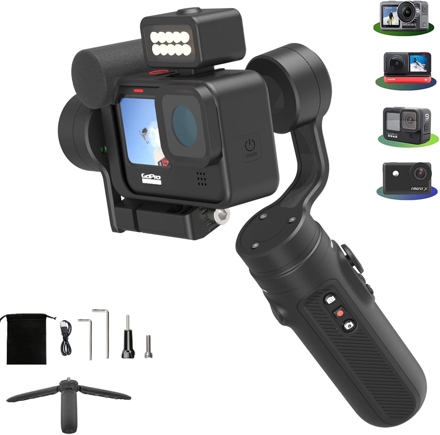 - Compatible con modo multimedio: estabilizador de cardán INKEE Falcon Plus compatible con cámaras de acción 10/9/8/max / 7/6/5, Osmo Action, insta360 y otros tamaños, compatible con instalar el modo multimedia. Nota: el cardán solo puede controlar la cámara de acción 9/8/7/6/5 a través de Bluetooth. Otros tipos de cámaras deportivas están fuera de control, pero pueden disparar constantemente.