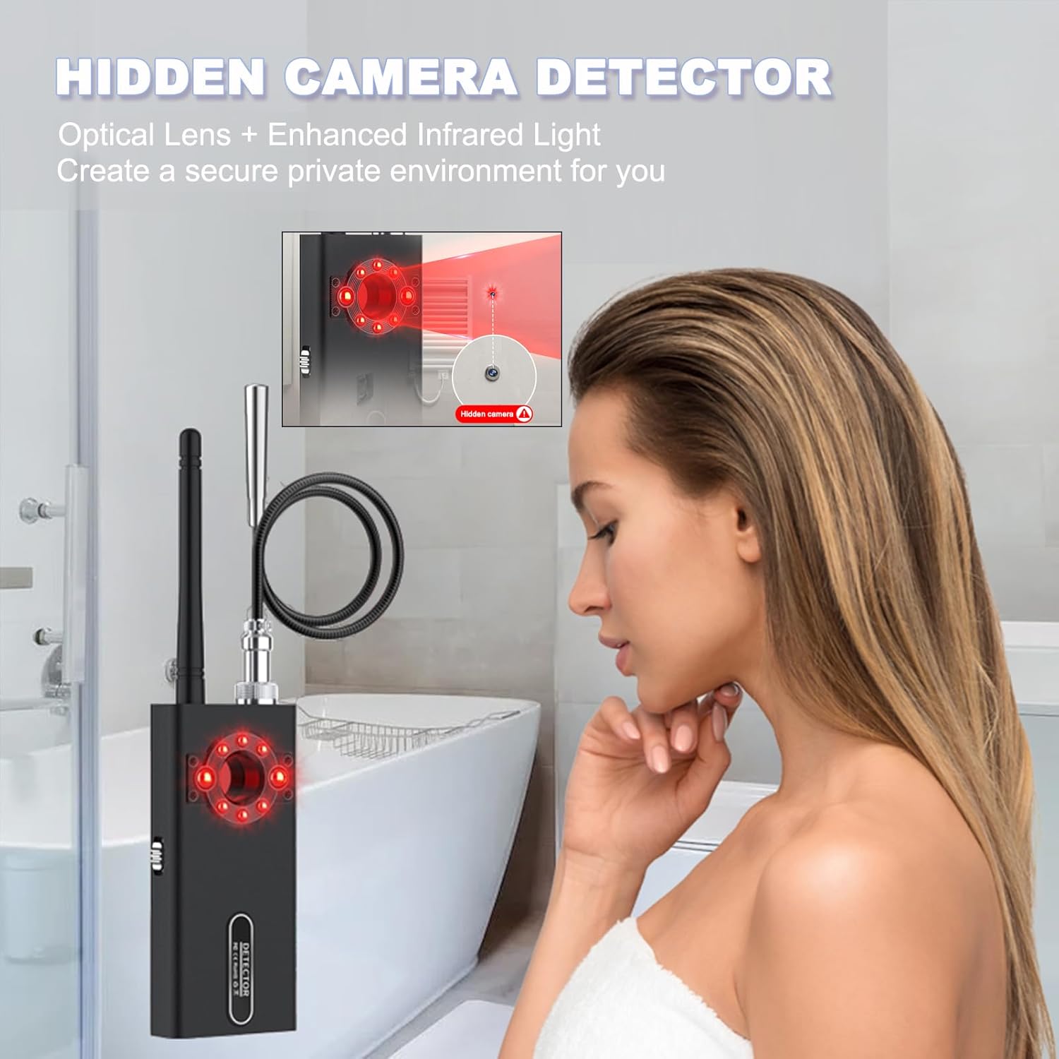 - Detector de cámara oculta para viajes: Con su propia lente óptica, es más fácil encontrar cámaras ocultas sin miedo a la luz. Evita las escuchas, fotos sinceras y fugas de privacidad personal. Adecuado para profesionales, personales, viajeros y hombres de negocios. Le ayuda a encontrar cámaras ocultas en el hotel, Airbnb, dormitorios, probadores, vestuarios, lugar privado, etc. Encuentra errores ocultos y dispositivos de escucha en la oficina y salas de conferencias, detector gps para vehículos