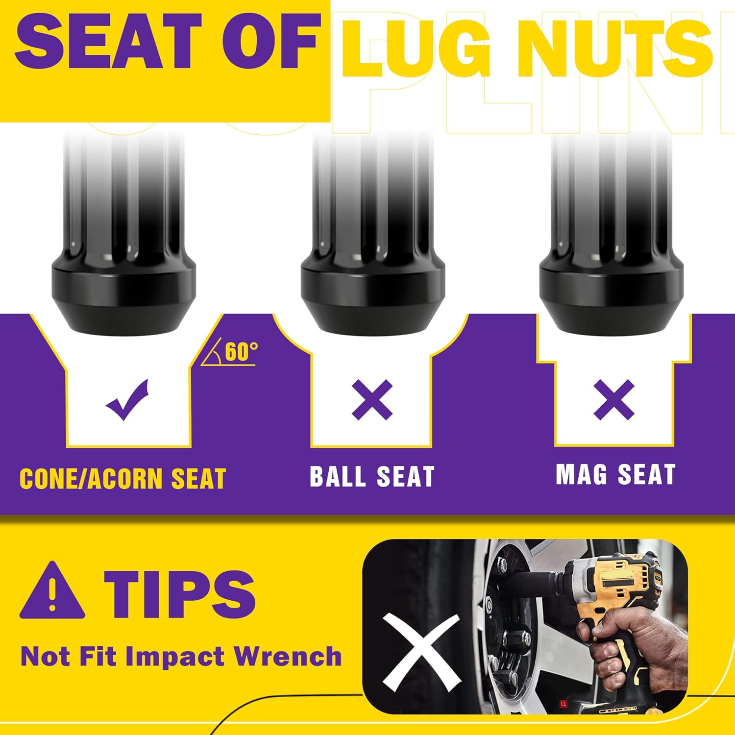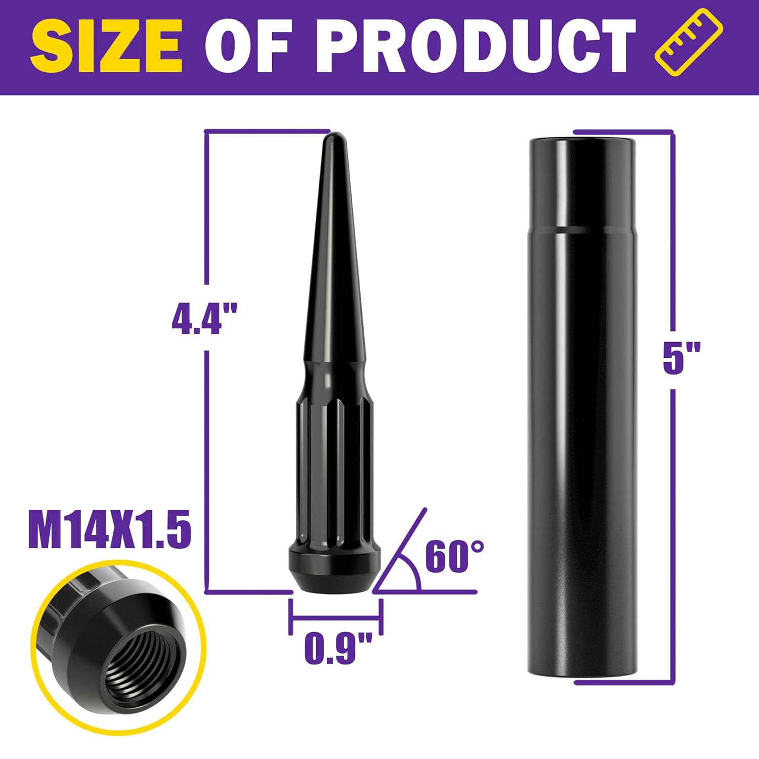 - Nota: 24 tuercas de llanta con púas con 1 llave de enchufe para ruedas de posventa solo con rosca M14x1.5. Ofrece un aspecto agresivo para los entusiastas del off-road