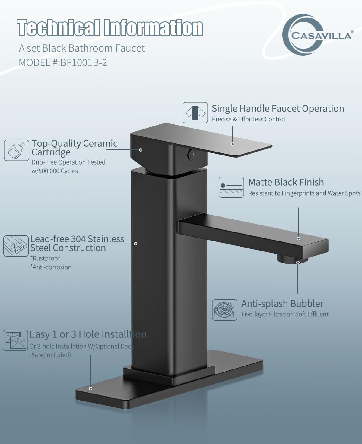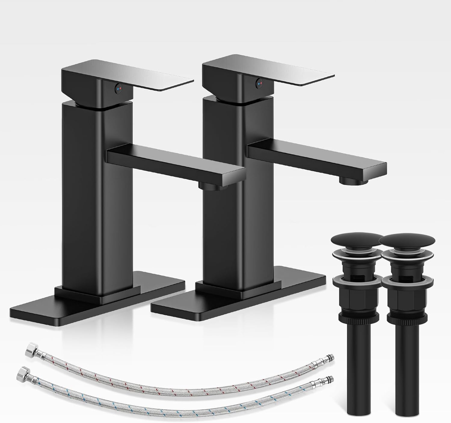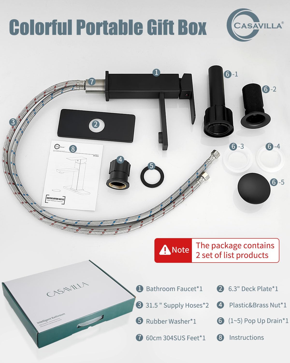 La decoración completa para el hogar incluye: 2 grifos de baño negro mate, 2 tapas de orificio de 6.3 pulgadas, 2 desagües automáticos (con rebosadero) y 4 líneas de suministro. Compre dos juegos a la vez y ahorre tiempo y dinero. Diseño universal para una apariencia completa, que mantiene la unidad de uso y le brinda una experiencia familiar. Si ya ha usado este juego, sin duda lo recomendará a sus amigos o familiares.