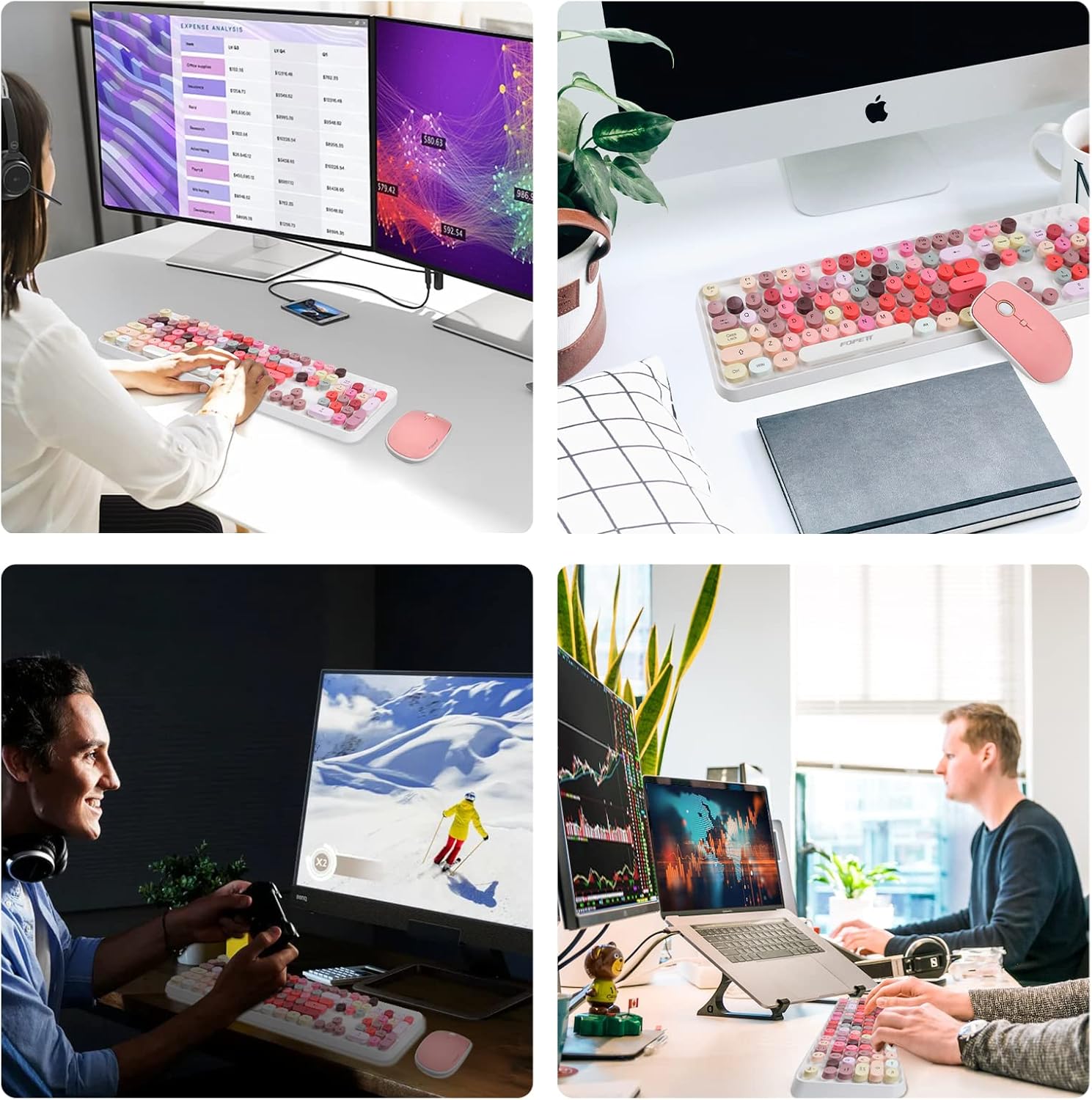 - Amplia compatibilidad: Teclado inalámbrico: nuestro teclado inalámbrico para computadora tiene 12 teclas de función para un acceso rápido a música, volumen, correo y más (tené en cuenta que las teclas rápidas pueden no ser totalmente compatibles con los sistemas Mac). Este combo de teclado y mouse es compatible con varios sistemas operativos, incluidos Windows XP/ME/Vista/7/8/10/11. Funciona a la perfección con dispositivos que tienen una ranura USB, como PC, computadoras portátiles, MacBooks, computadoras de escritorio, Chromebooks e incluso televisores inteligentes.