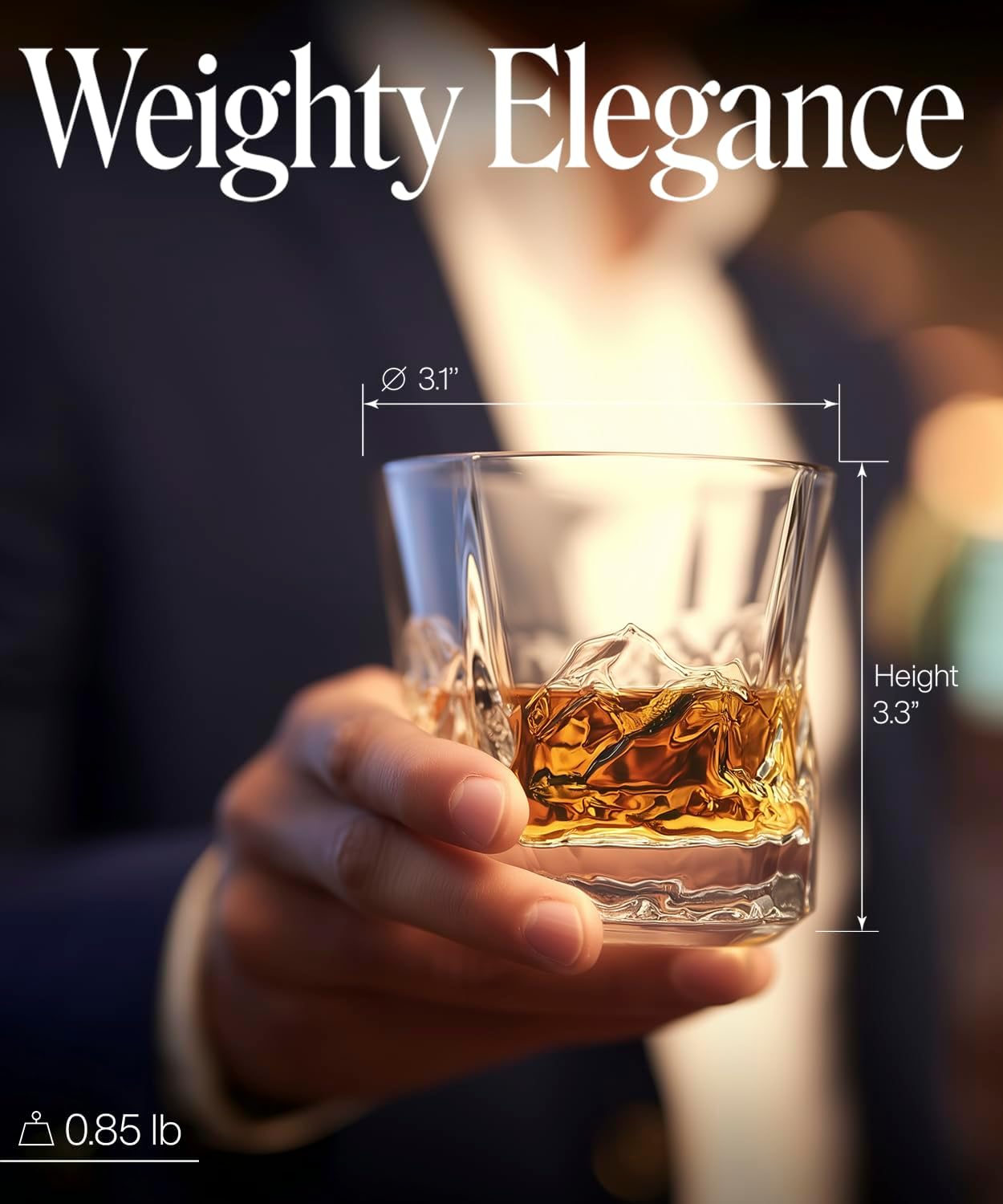 - Eleva tu barra: mejora la estética de tu bar en casa con nuestros vasos de whisky gruesos y pesados. Su diseño de relieve de montaña 3D es llamativo y práctico, asegurando una base resistente que es perfecta para tu bourbon o whisky favorito, limpio o en las rocas.
