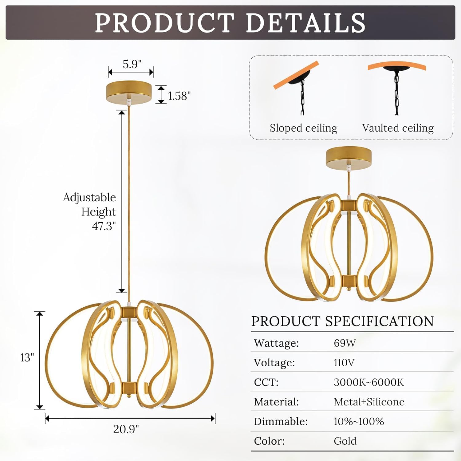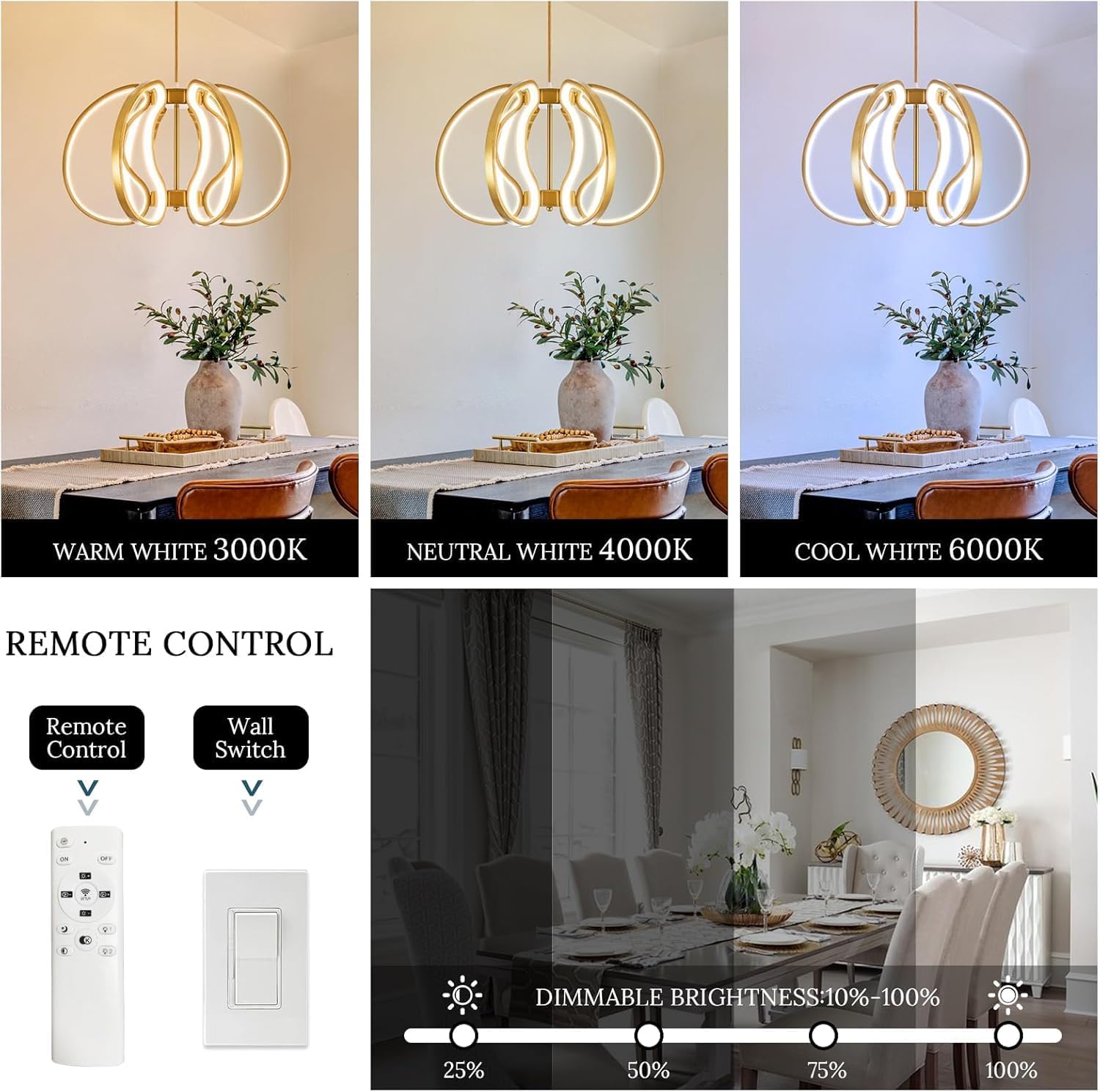 - Iluminación colgante LED de fácil instalación: la lámpara LED moderna dorada viene con instrucciones claras y todos los accesorios de montaje necesarios incluidos en el paquete. Las lámparas de araña para comedor transforman tu hogar con una iluminación impresionante en poco tiempo.