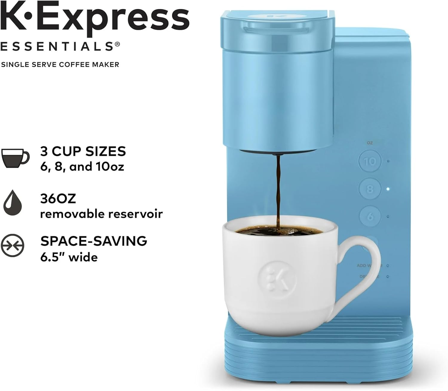 K-Express Essentials - Cafetera de una sola porción, cafetera compacta de cápsulas KCup con depósito de 36 onzas, apta para preparación rápida y taza de viaje, ideal para cafetera pequeña (azul cielo).