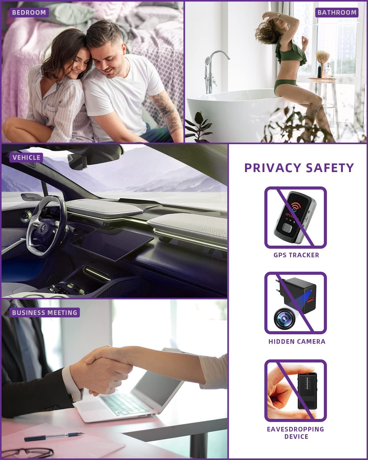- Tecnología de detección precisa: el detector de RF detecta ondas de radio, GSM, 2G, 3G, señal móvil 4G, error de tarjeta SIM con 6 niveles de sensibilidad ajustable de señal. El rango de frecuencia de recepción de este detector de dispositivos ocultos es de 1Mhz a 6.5Ghz. Rango de detección: 2.0 in-49.2 ft. Velocidad de escaneo 1500 veces/seg. Proteja su privacidad de manera más profesional.