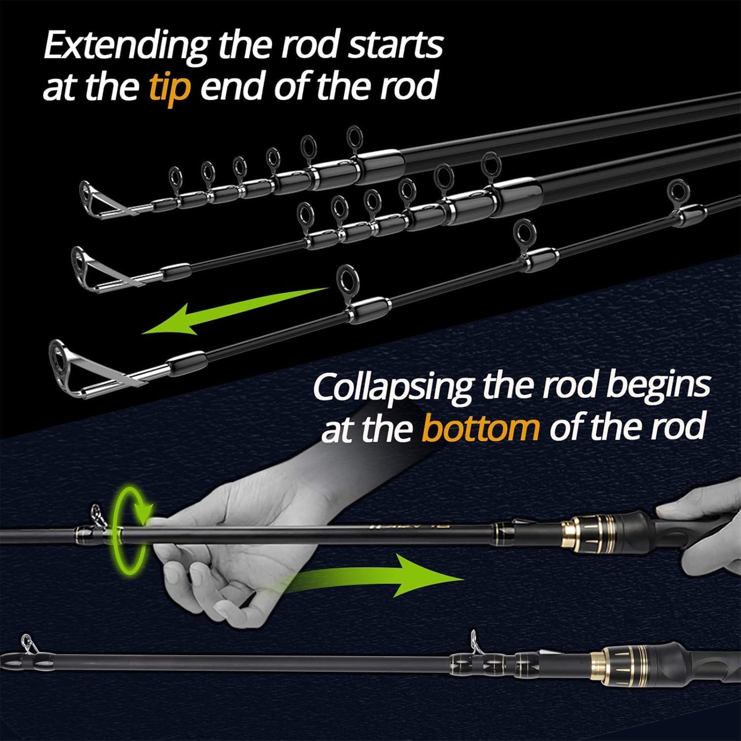 - TECNOLOGÍA DE RENDIMIENTO SOLOSCÓPICO: el blank KastKing KastFlex Toray 24-Ton Carbon Matrix y la sección de punta de vidrio sólido brindan durabilidad, sensibilidad y rendimiento inigualables. Rendimiento de una pieza en un diseño de caña telescópica de seis piezas. Las múltiples guías de línea flotantes mejoran el rendimiento del lance, brindan una conicidad uniforme y suave y eliminan los puntos planos o muertos en el blank. Las férulas Snug-Fit brindan