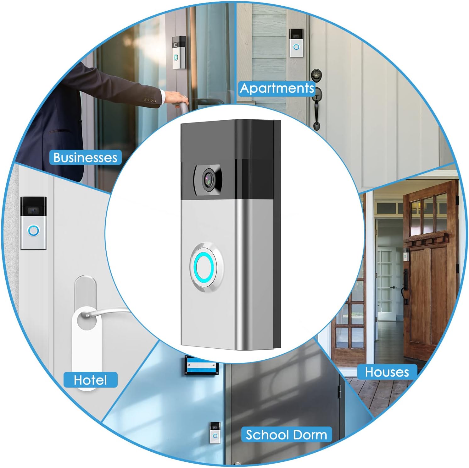 - Sin perforación: puede instalar el timbre de video en su hogar sin perforar agujeros en la puerta o la pared.