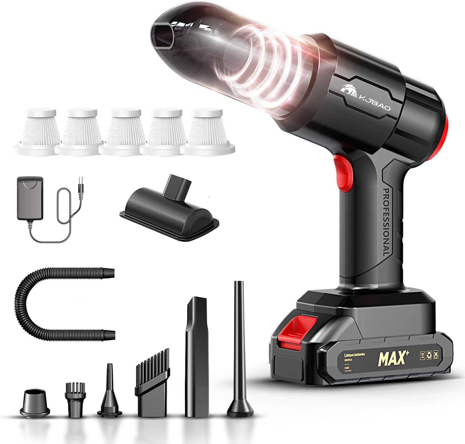 - Experimenta una potencia inigualable: este modelo actualizado de la aspiradora KJBAO para automóvil cuenta con un motor sin escobillas y una batería grande de 12500 mAh, proporcionando una mayor potencia de succión y soplado. Con una potencia de succión de hasta 21000 PA y una potencia de soplado de 260000 RPM, supera a otras aspiradoras de automóviles en el mercado
